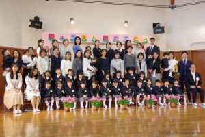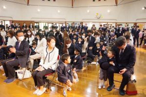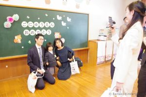 式終了後、お父さん、お母さんと一緒に記念写真を撮りました。1日も早く幼稚園生活になれて、お友だちと仲良くなって楽しく過ごしてね、新入園児のみなさん!