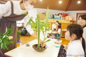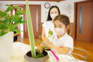 「花育」とは、花や緑の持つ多様な機能に着目し、花や緑を教育や地域活動等に取り入れる取り組みのことです。3月に実施をしたイベントで保護者の方々からも大変ご好評をいただき、今回日本の伝統文化であるいけばなを通して、子どもの非認知能力や生きる力を育むことを目的として6月より課外教室としてスタートすることとなりました。