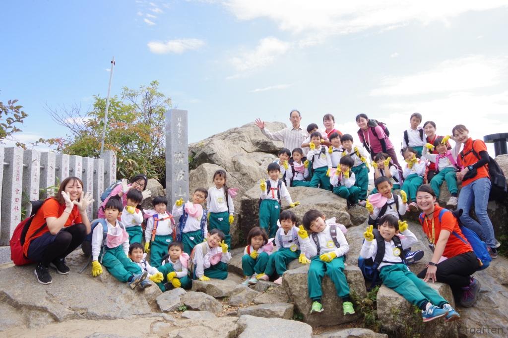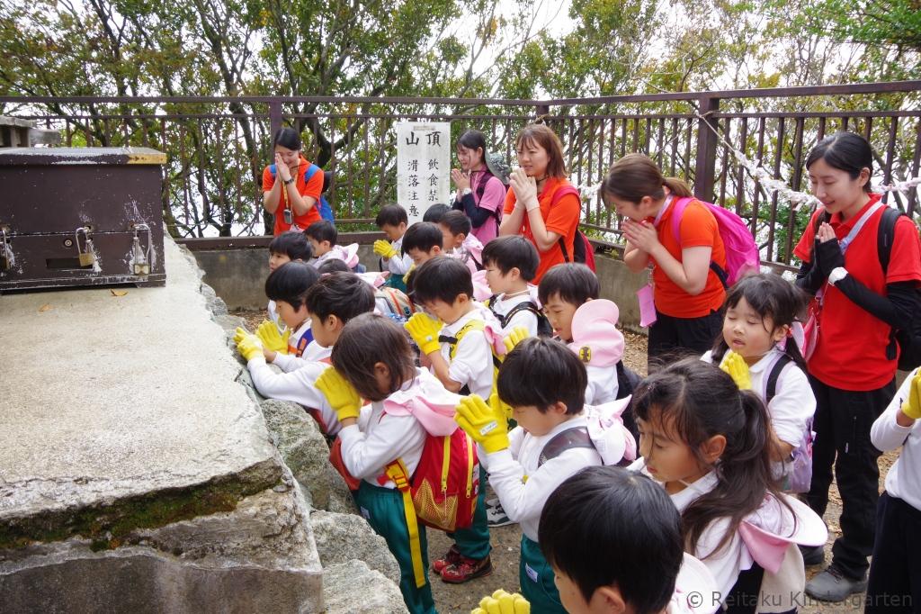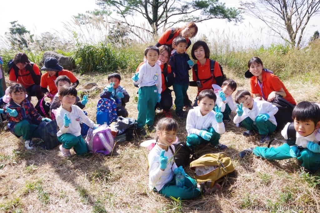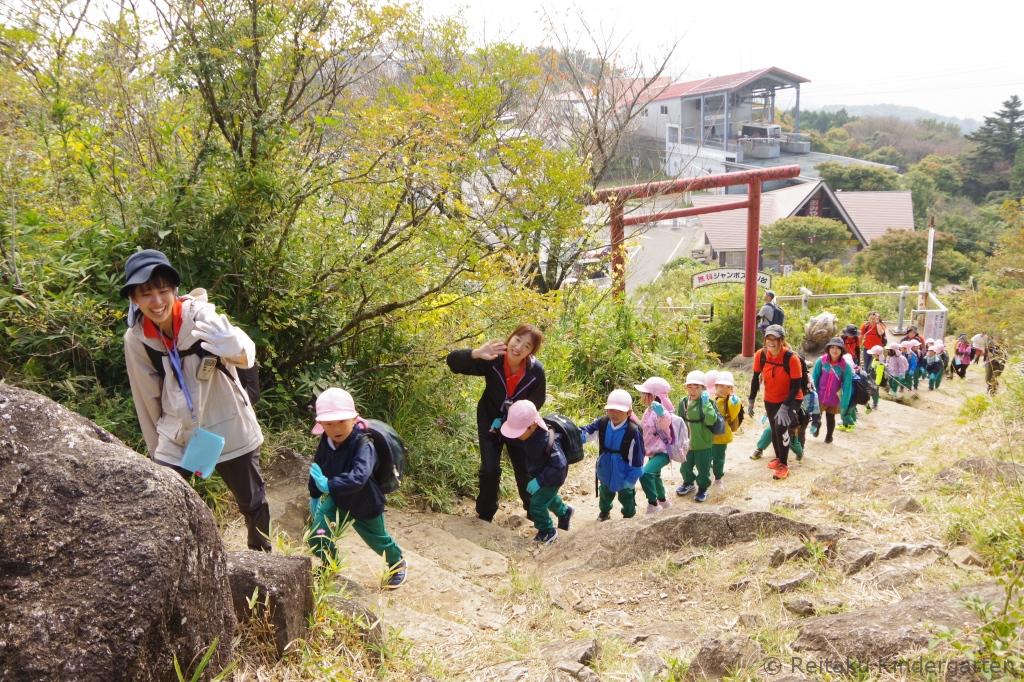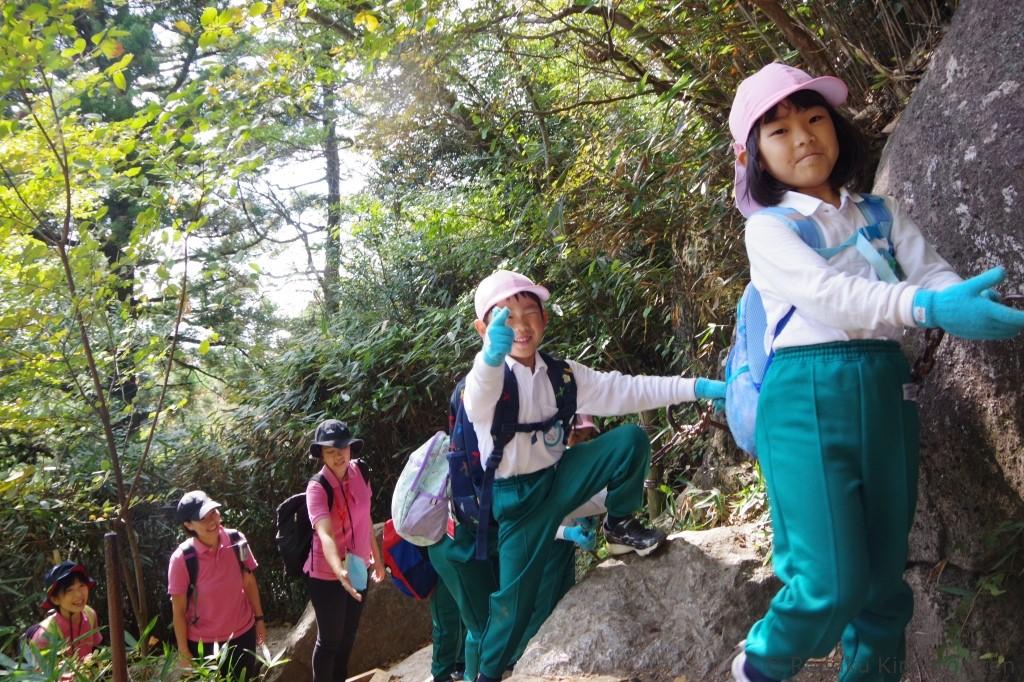 今年は秋晴れの爽やかな気候の中登ることができ、子どもたちも弱音を吐くことなく、一歩一歩ゆっくりと確実に全員無事頂上まで登り切りました。