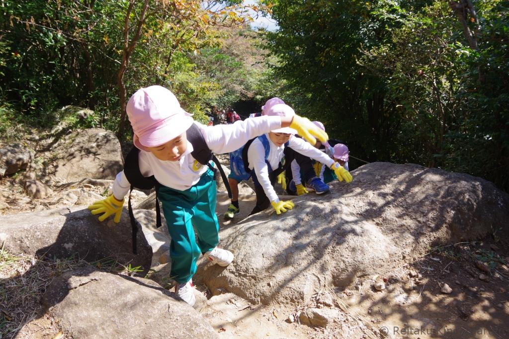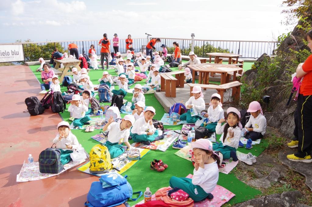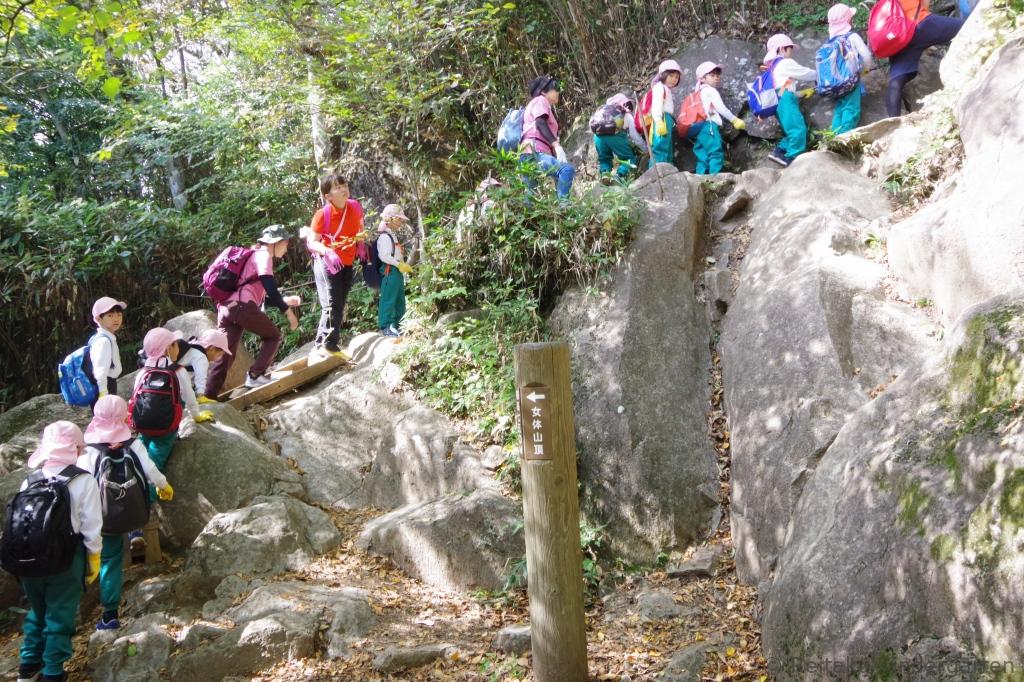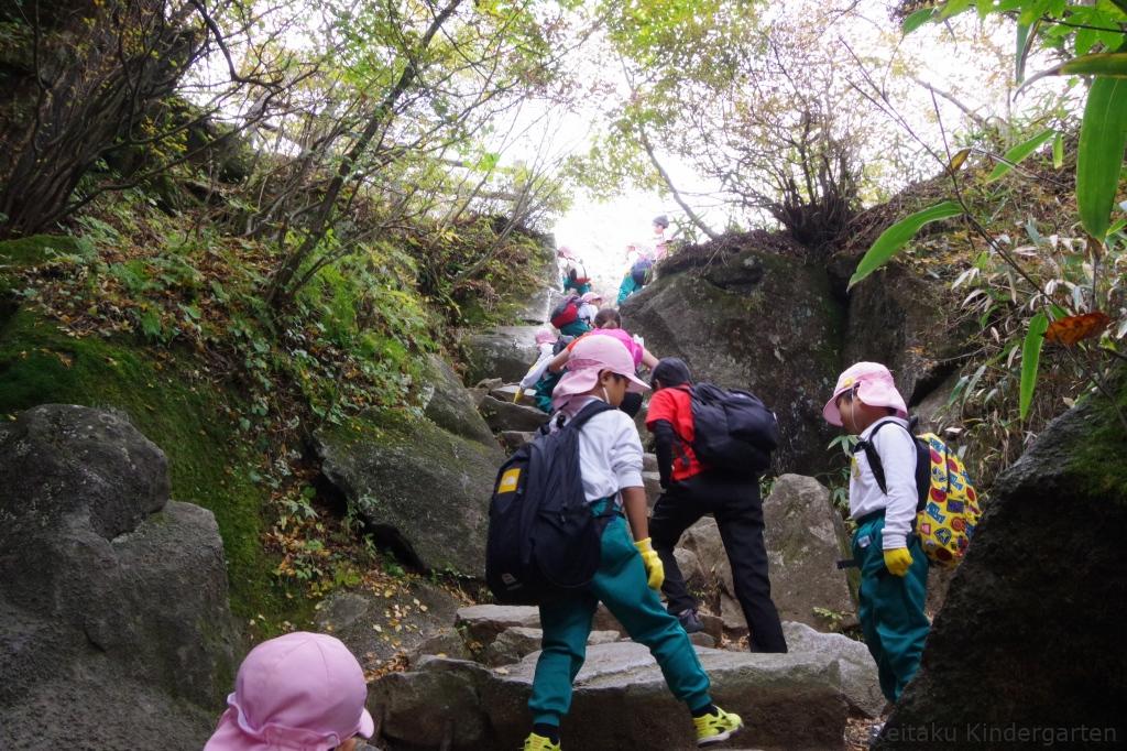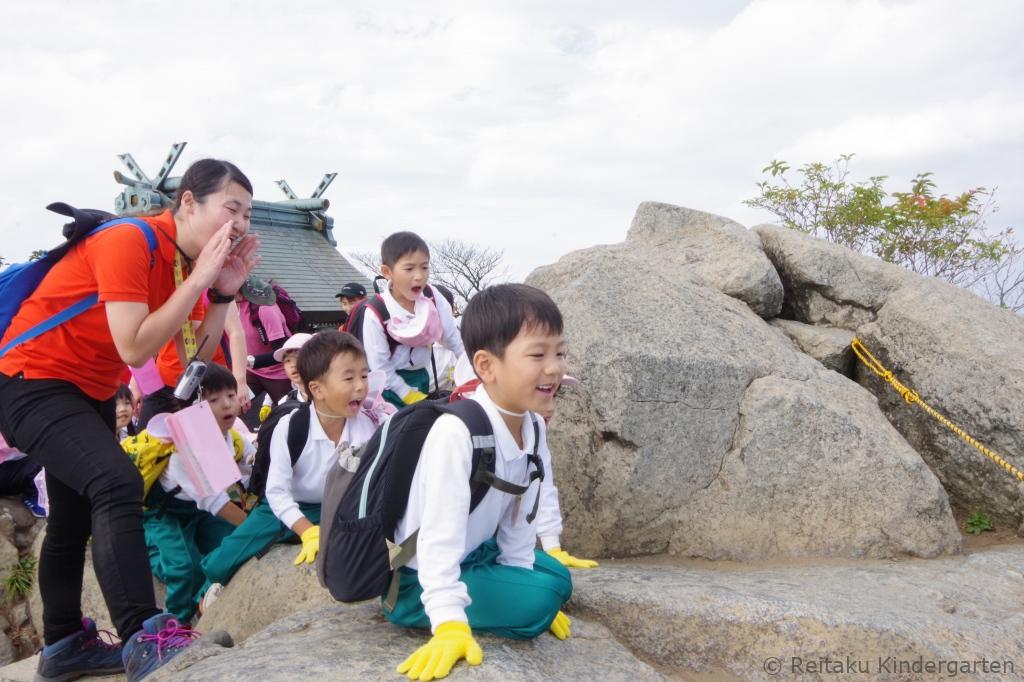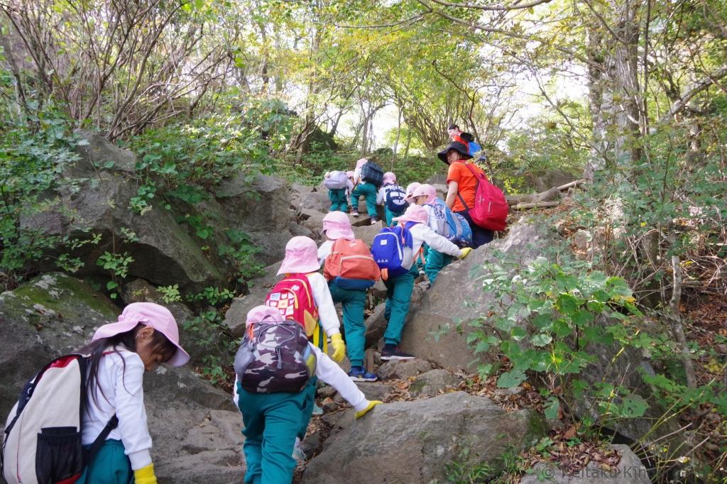 今年は秋晴れの爽やかな気候の中登ることができ、子どもたちも弱音を吐くことなく、一歩一歩ゆっくりと確実に全員無事頂上まで登り切りました。