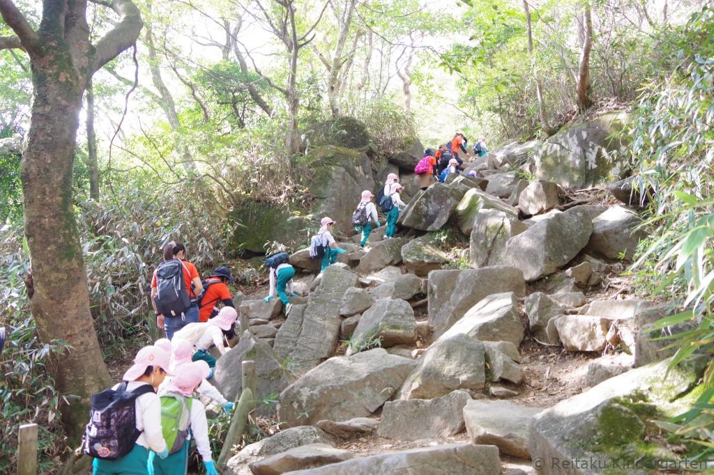 幼稚園の先生と子ども達だけで、日本百名山の1つである877メートルの筑波山に挑戦です。 つつじケ丘より女体山まで約1.8キロの山道をゆっくりゆっくり登っていきました。