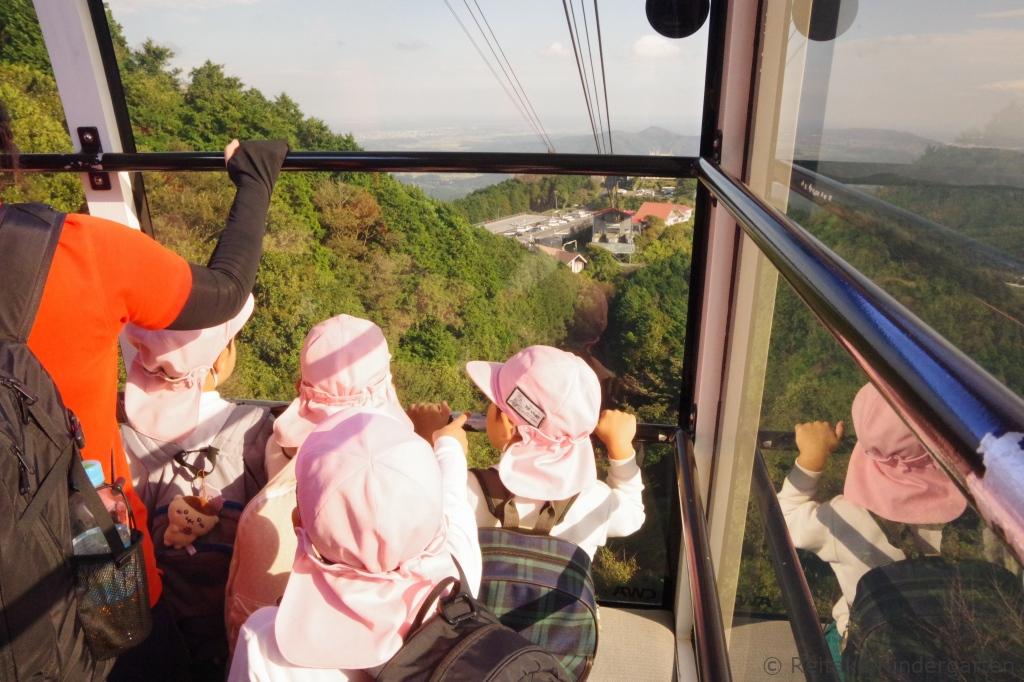 子どもたちが「登山後のお楽しみ」といって楽しみにしていたロープウェーで駐車場まで降りてきました。ロープウェーから眺める絶景に終始大興奮の子どもたち、登山の疲れもどこかへ吹き飛んでしまったようです。