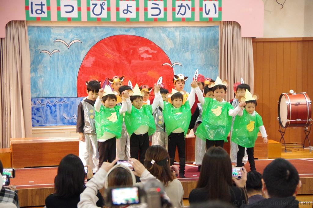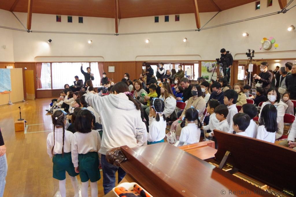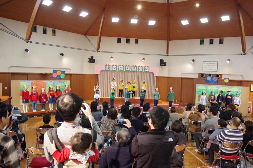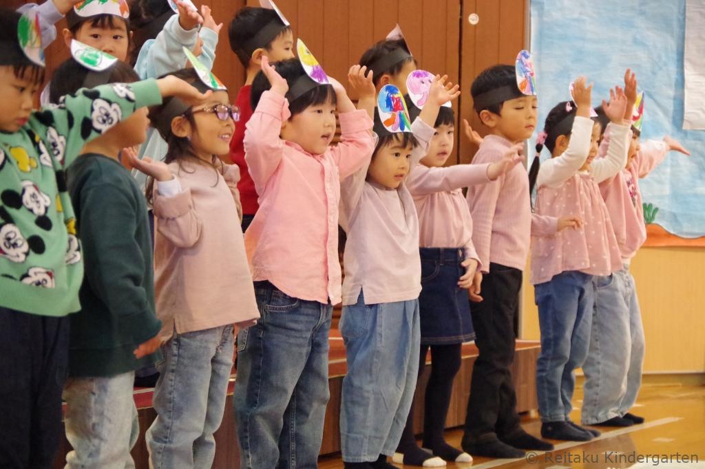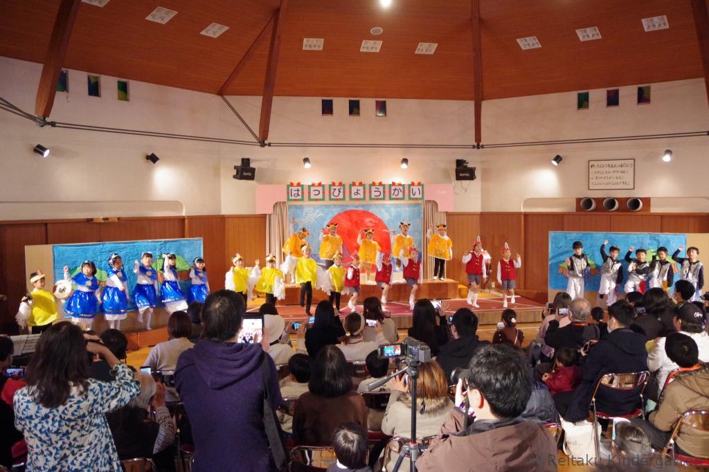 遊戯室が、園児の家族の方々でいっぱいになり、園児たちも大勢の観客を前にして、緊張しながらもそれぞれの役割を立派に果たすことができました。