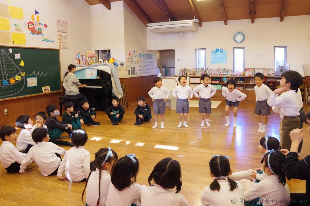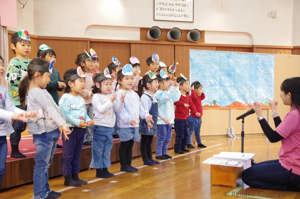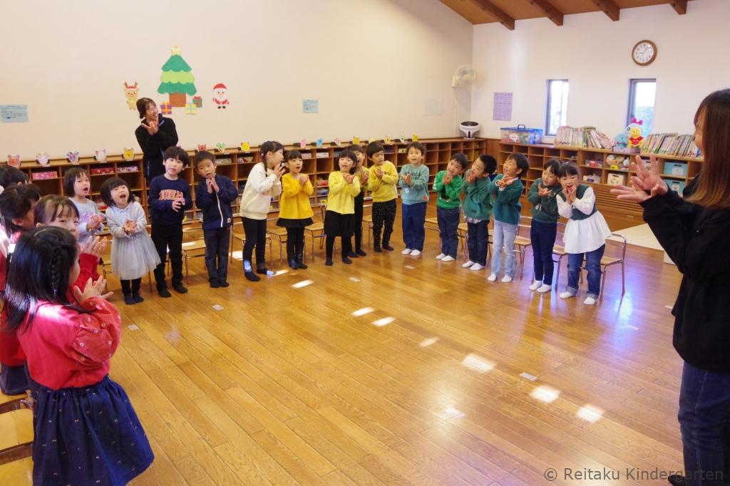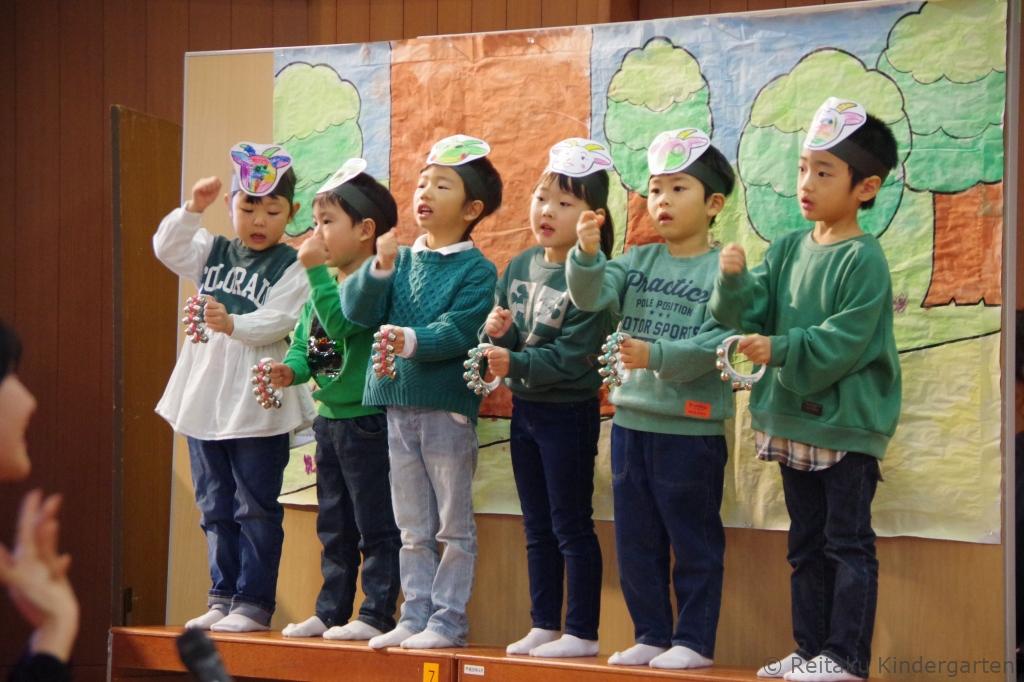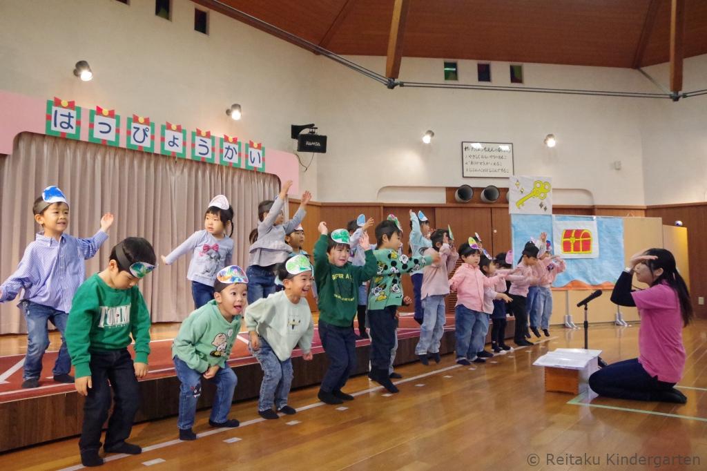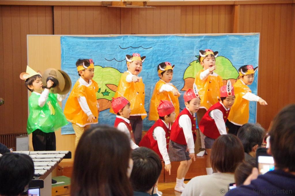 遊戯室が、園児の家族の方々でいっぱいになり、園児たちも大勢の観客を前にして、緊張しながらもそれぞれの役割を立派に果たすことができました。