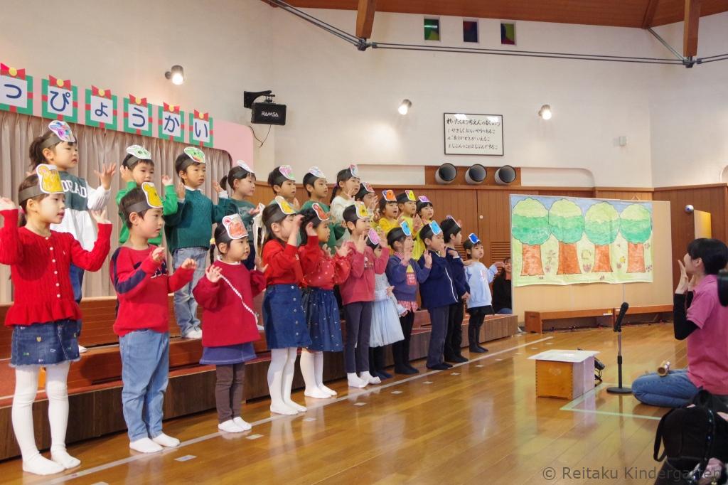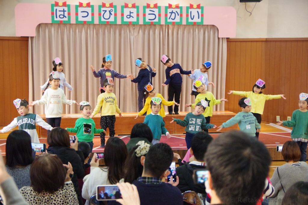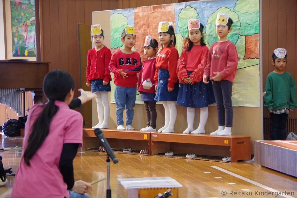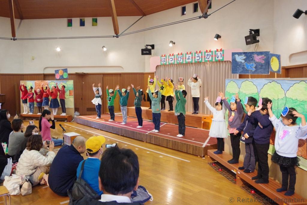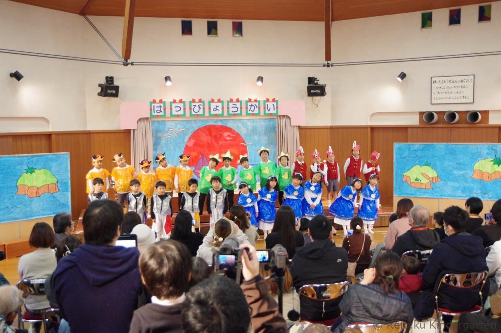 1日目は、各学年縦割りで、りす組(年少)、すみれ組(年中)、ほし組(年長)の発表がありました。