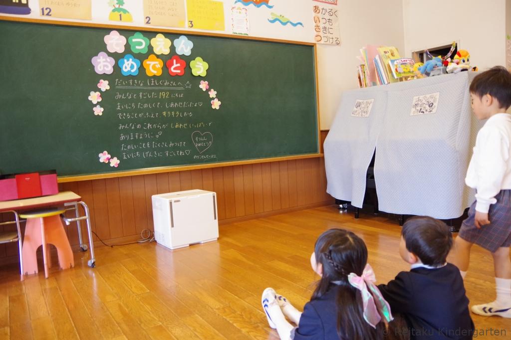 幼稚園での思い出をそれぞれ胸に抱きながら、卒園児が「別れのうた」を歌って、卒園式は終了しました。