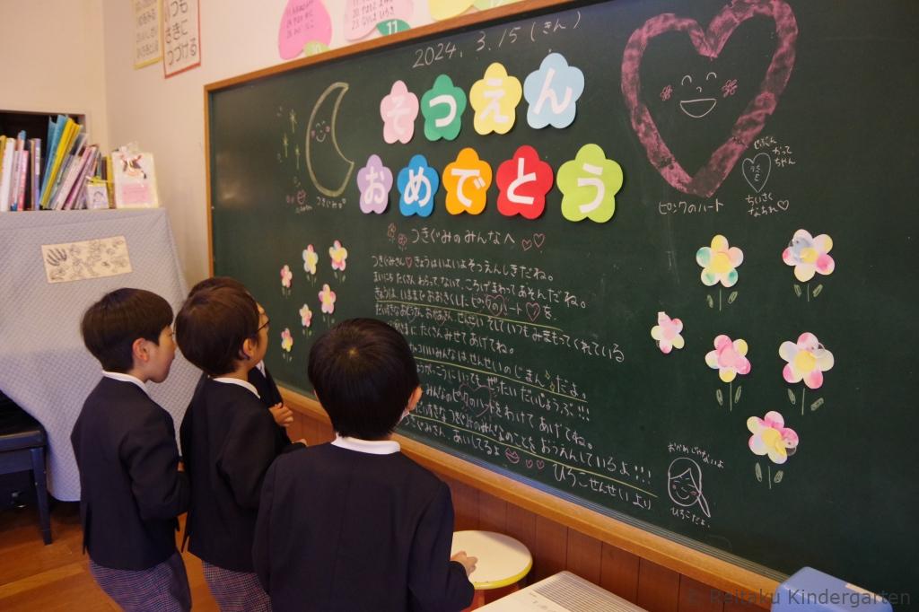 保護者の皆様もこれまで幼稚園の保育活動に多大なるご協力をいただきありがとうございました。これからのお子様の更なる成長を教職員一同お祈りしています。