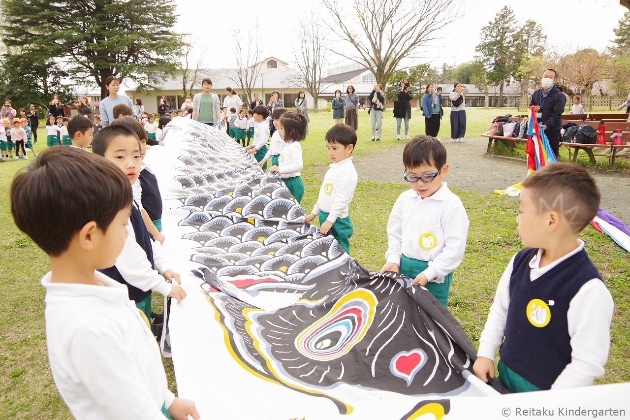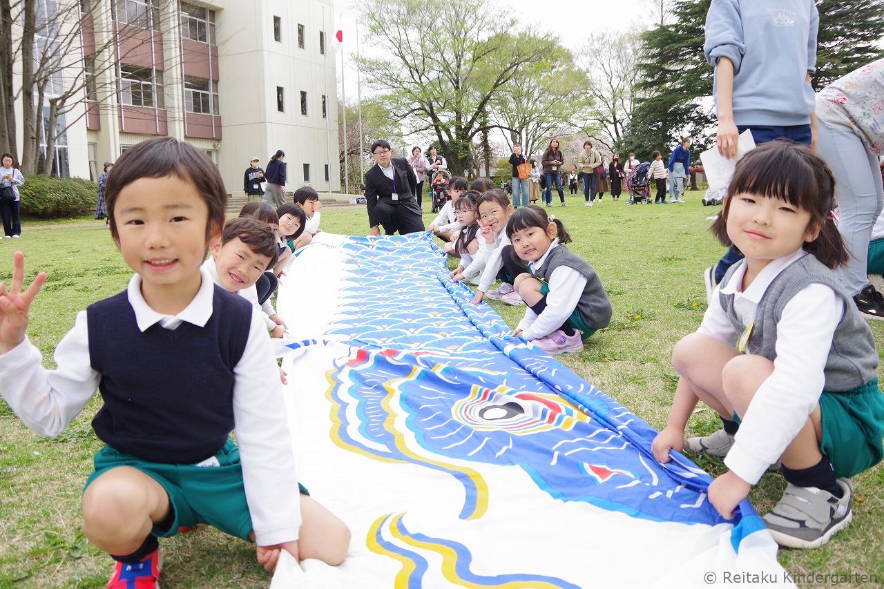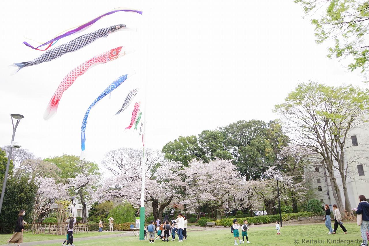 これから天気のよい日には、大空高く泳ぐこいのぼりを見ることができます。麗澤幼稚園のこどもたちも、こいのぼりのように、強くたくましく、元気いっぱい大きくなれますように。