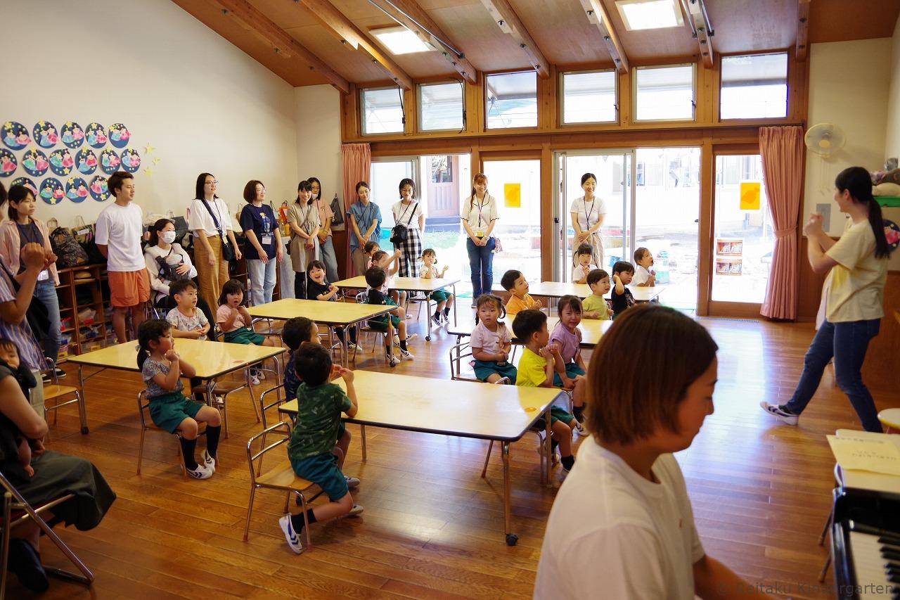 半日の短い保育参観でしたが、4月に入園して2カ月が経過し、成長した子どもたちの姿を直接確認できて、保護者の皆さんも大変喜んでいました。