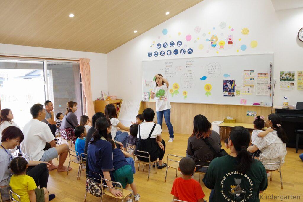5月より始まった未就園児対象のプレルーム「うさぎルーム」の今学期最後の活動が行われました。初めての子ども達も楽しく過ごしています。