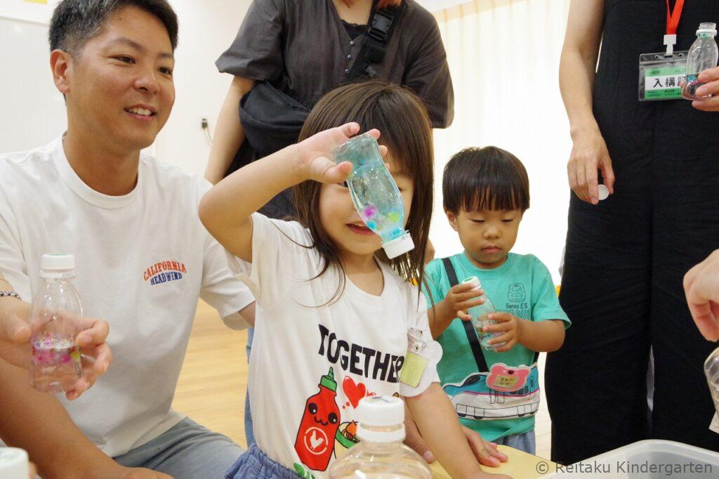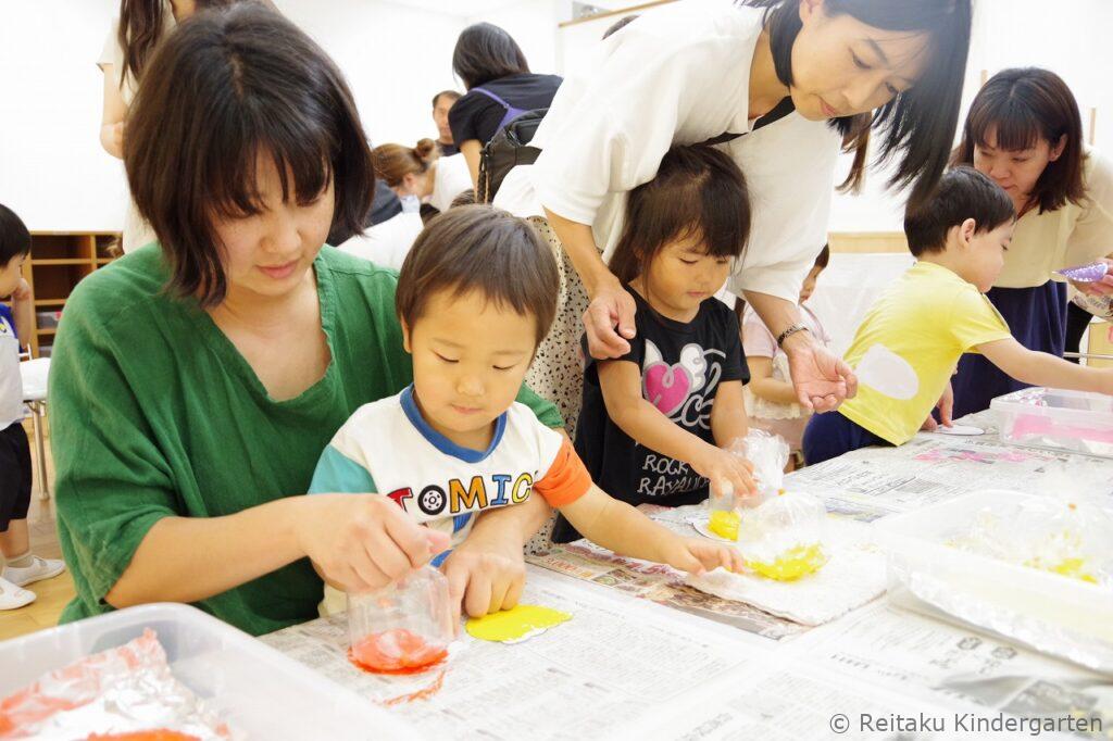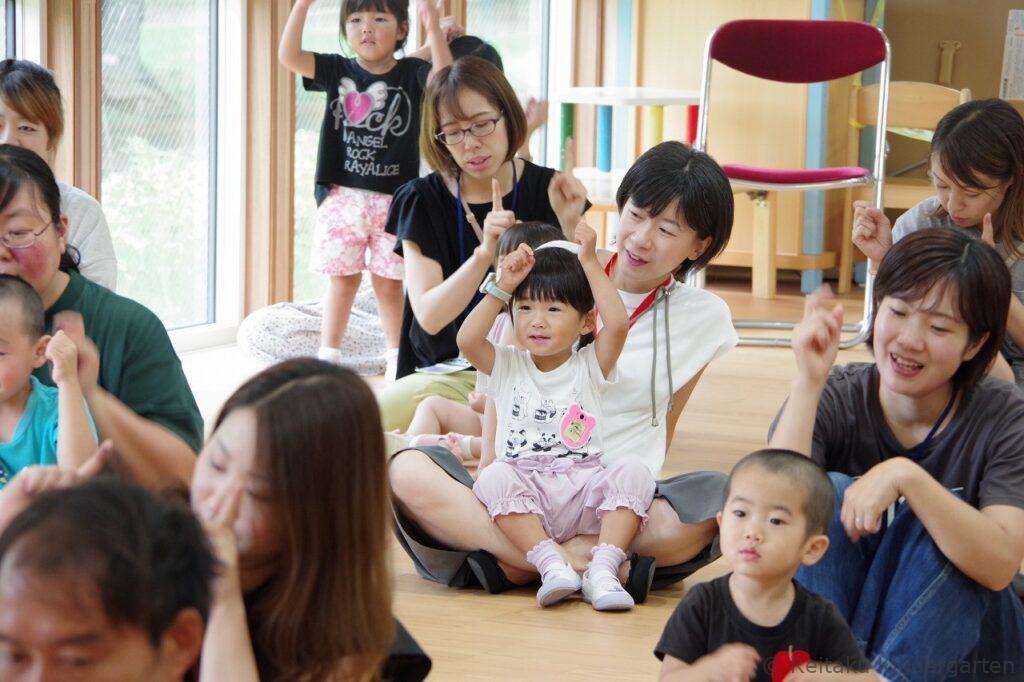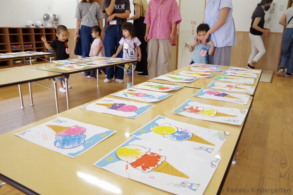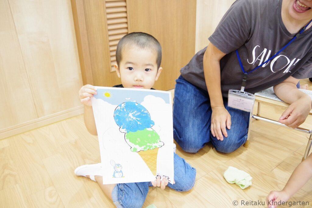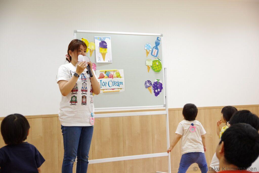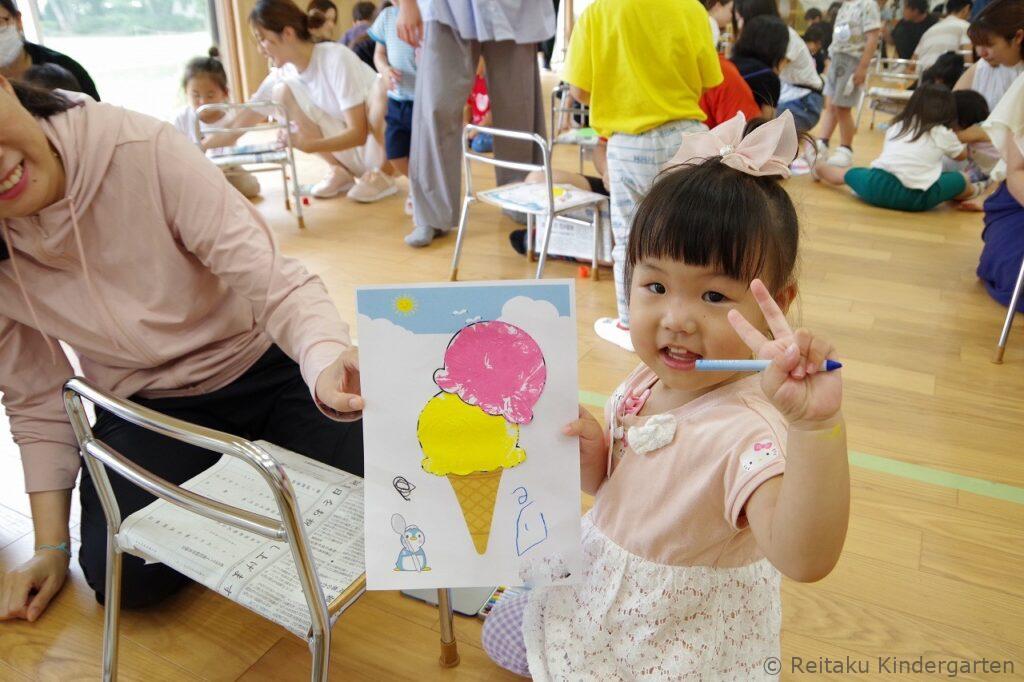 5月に始めて幼稚園に来たときは新しい環境で緊張している友達も多かったようですが、先生と一緒に手遊びをしたり、簡単な制作活動をしたり、紙芝居を見たり、園庭で遊んだりして、楽しく過ごすうちに園生活にすっかり慣れ、毎回楽しく過ごしています。7月には全体交流会なども行って、みんなでアイスクリームの制作を楽しみました。子ども達もうさぎルームの日を楽しみに待ってくれているようです。次にうさぎルームのお友だちに会えるのは、夏休み後です。楽しい夏休みを過ごしてね!