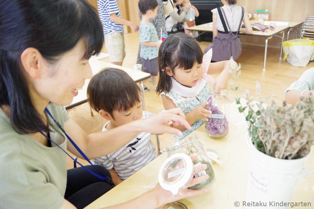 麗澤幼稚園からは廃材を使用したおもちゃ作りワークショップ、麗澤中高SDGs研究会からは楽しみながらSDGsを学べるゲームに加えてレモネードスタンドの活動、花育いけばなLABOからはロスフラワーで作ったドライフラワーを使用した制作ワークショップを実施。スタンプラリーも実施し、全ワークショップを体験した方には幼稚園から素敵なプレゼントをお渡ししました!