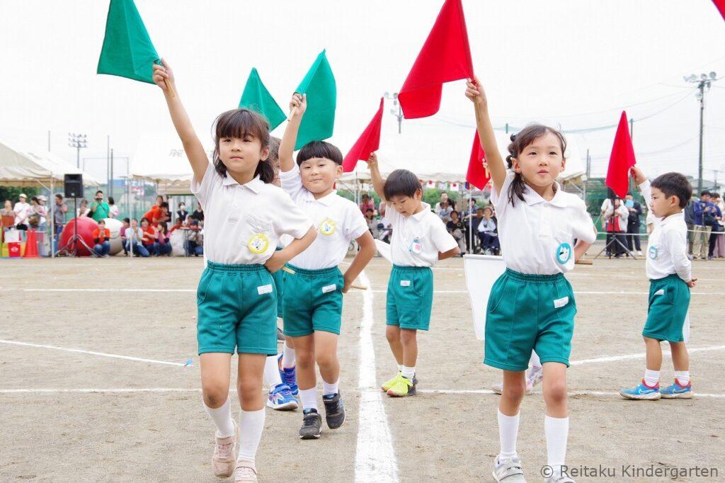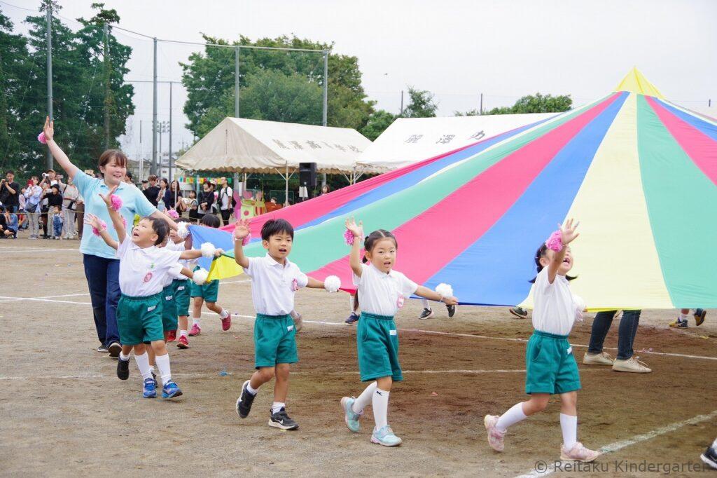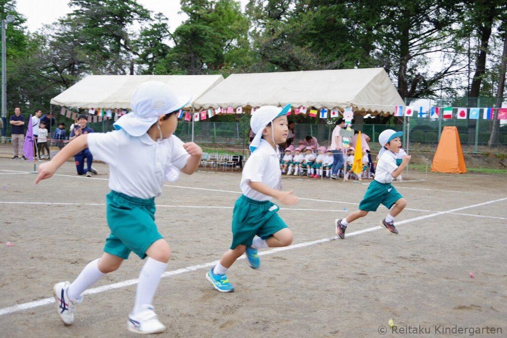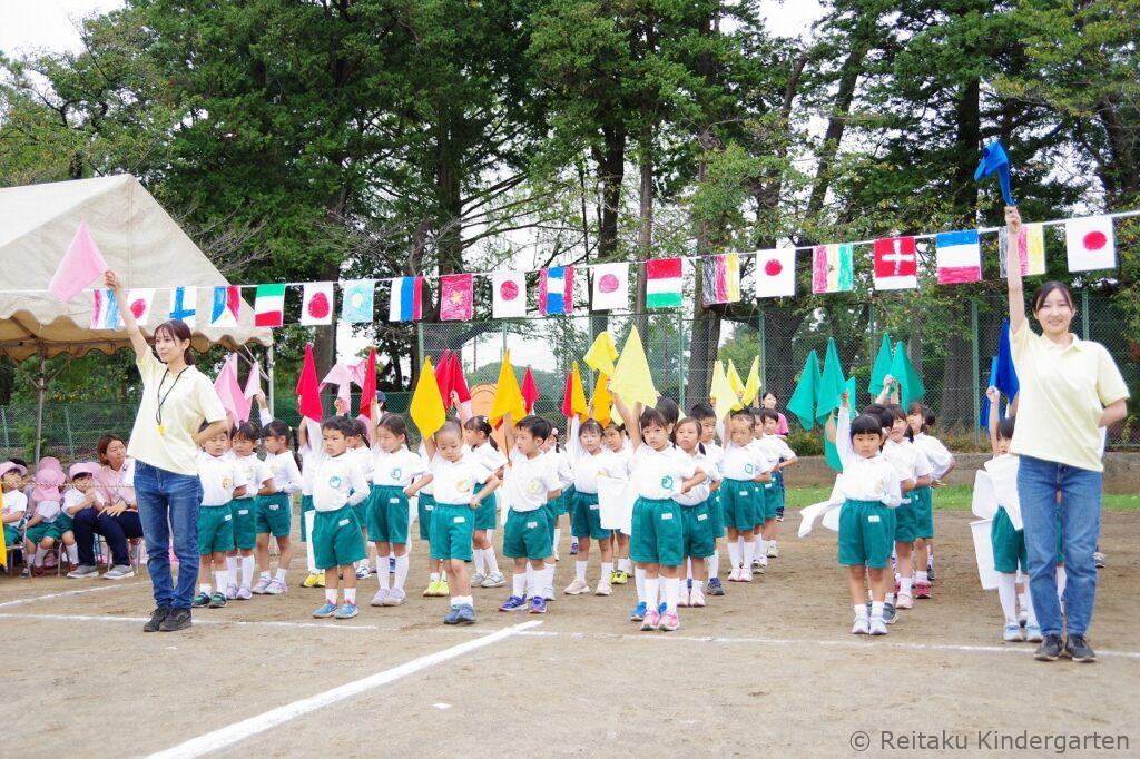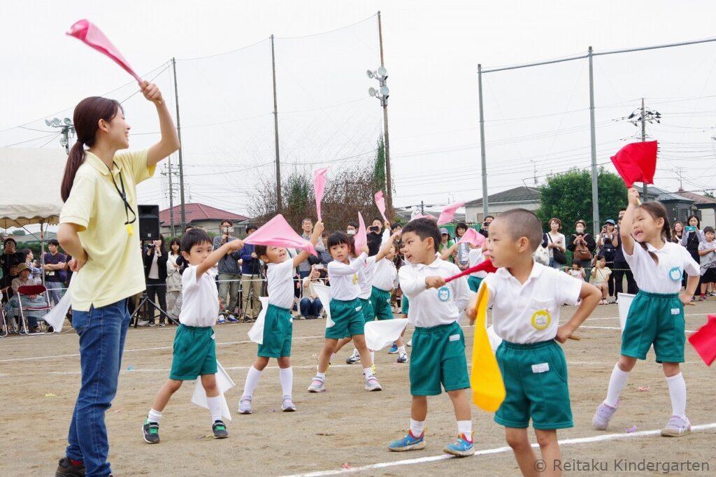 10月6日(日)、麗澤幼稚園の運動会が、廣池学園第一グラウンドで行なわれました。雨天のため1日順延となりましたが、当日は穏やかな気候の中、運動会の実施ができました。