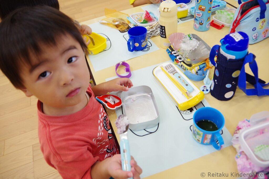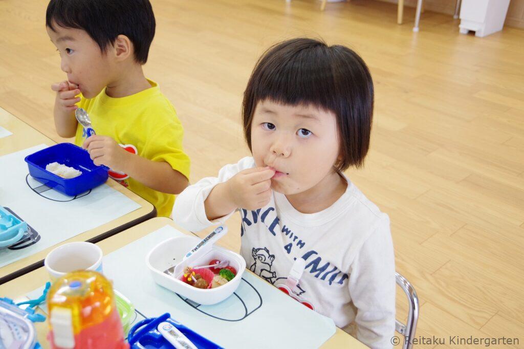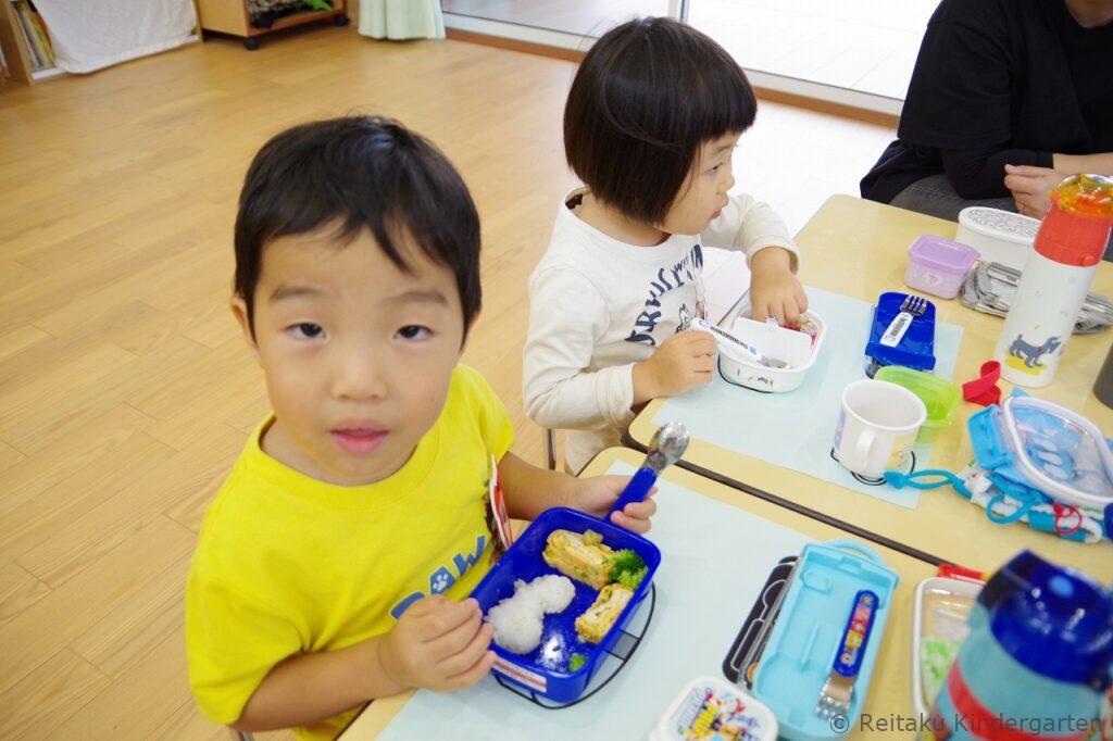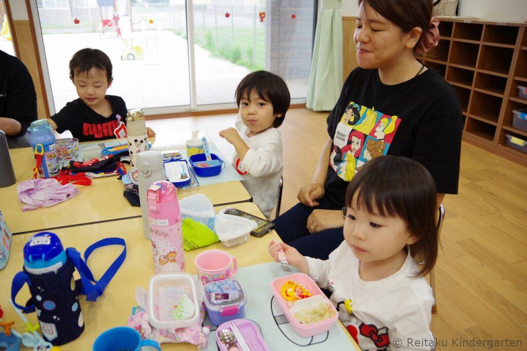 お弁当の時間になると待ってましたとばかりに、いそいそとお弁当箱を開ける子ども達。お弁当箱に詰まった愛情たっぷりのお弁当にどの子もとっても嬉しそうです。