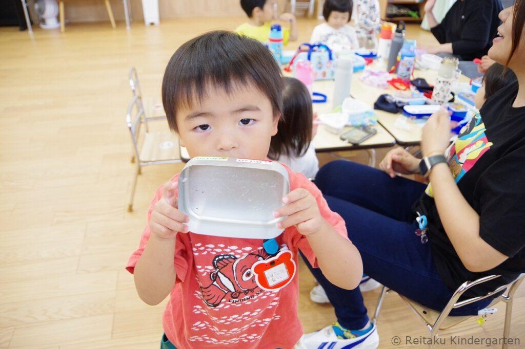 お弁当箱が空っぽになってお腹もいっぱいになった子ども達。帰りの会では眠そうにしている子もいましたが、幼稚園の1日をめいっぱい楽しんで降園しました。