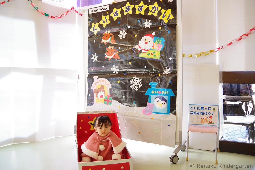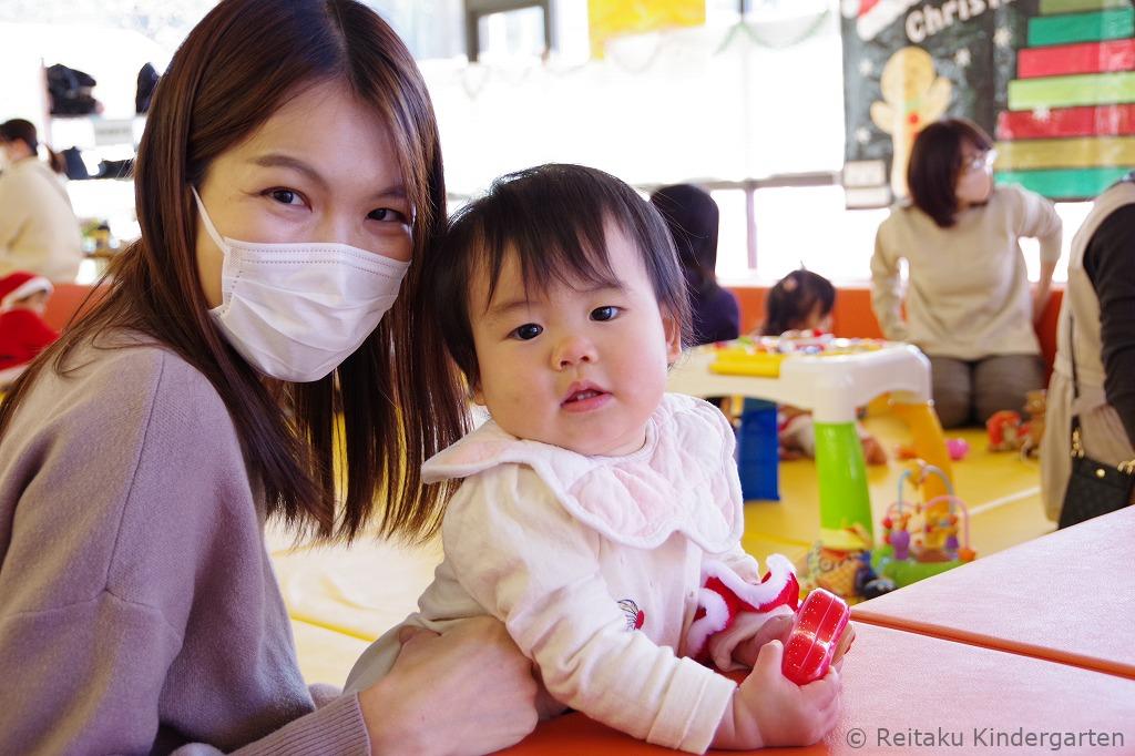 毎回保育者による絵本の読み聞かせや、手遊び、ふれあい遊びの紹介など毎回様々な活動を行なっておりますが、今日は親子教室としてクリスマス会を実施しました。