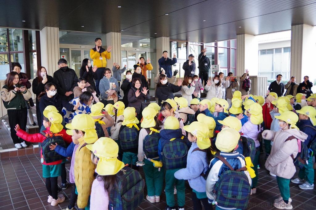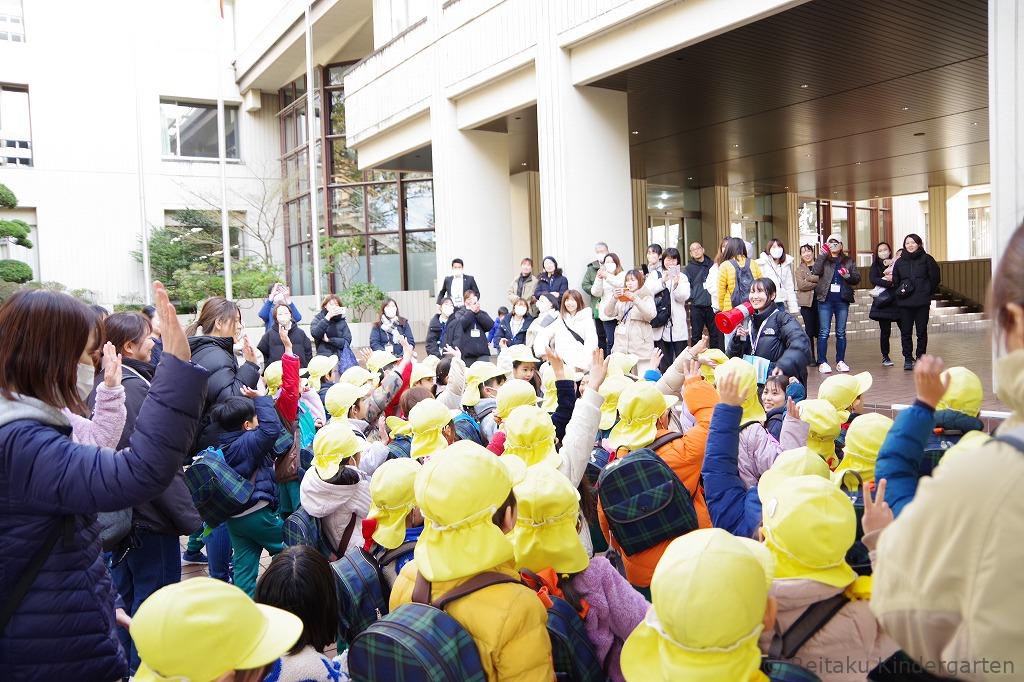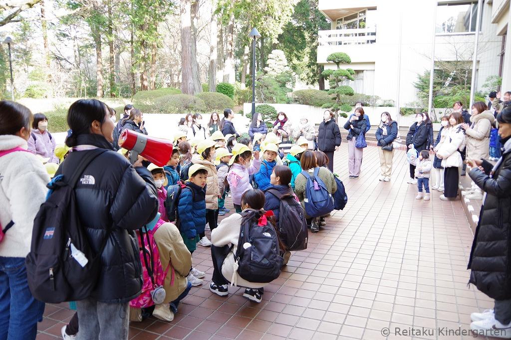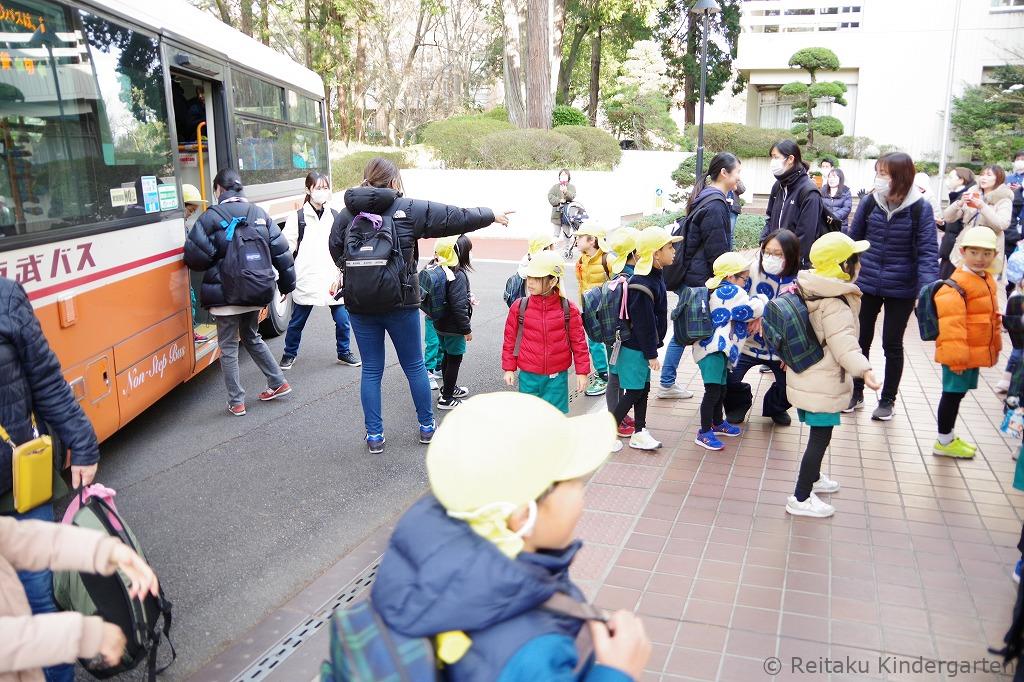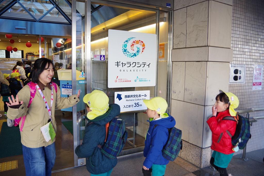 年長児は、2月7日(金)、足立区にある複合体験型施設「ギャラクシティ」に卒園遠足に出かけました。保護者のみなさんに見送られ、東武路線バス1台を貸しきって幼稚園を出発しました。