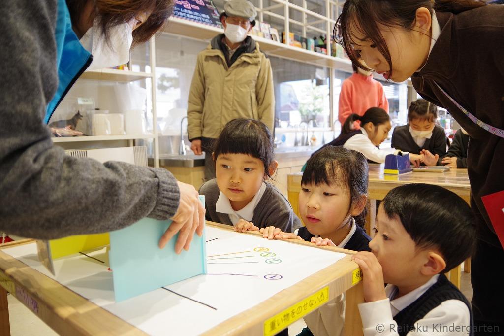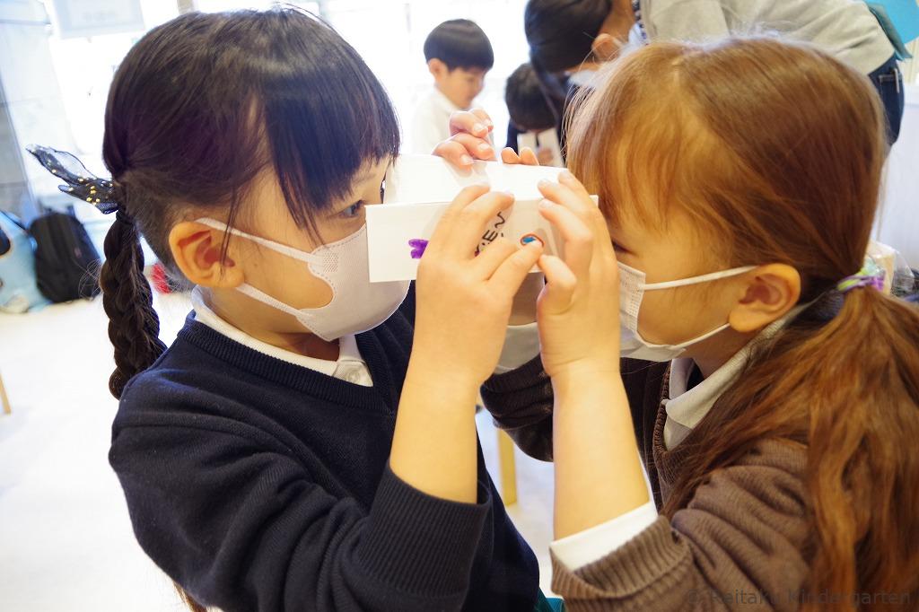 ギャラクシティに到着し、玄関前でクラスごとに記念写真を撮り、モノづくりガレージで工作をしました。鏡面シートを折りたたんで万華鏡を作った子ども達。それぞれ自分オリジナルのお土産ができて大満足でした。