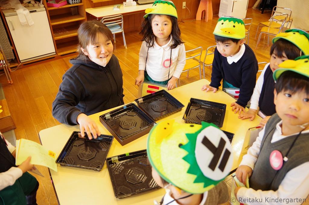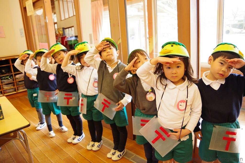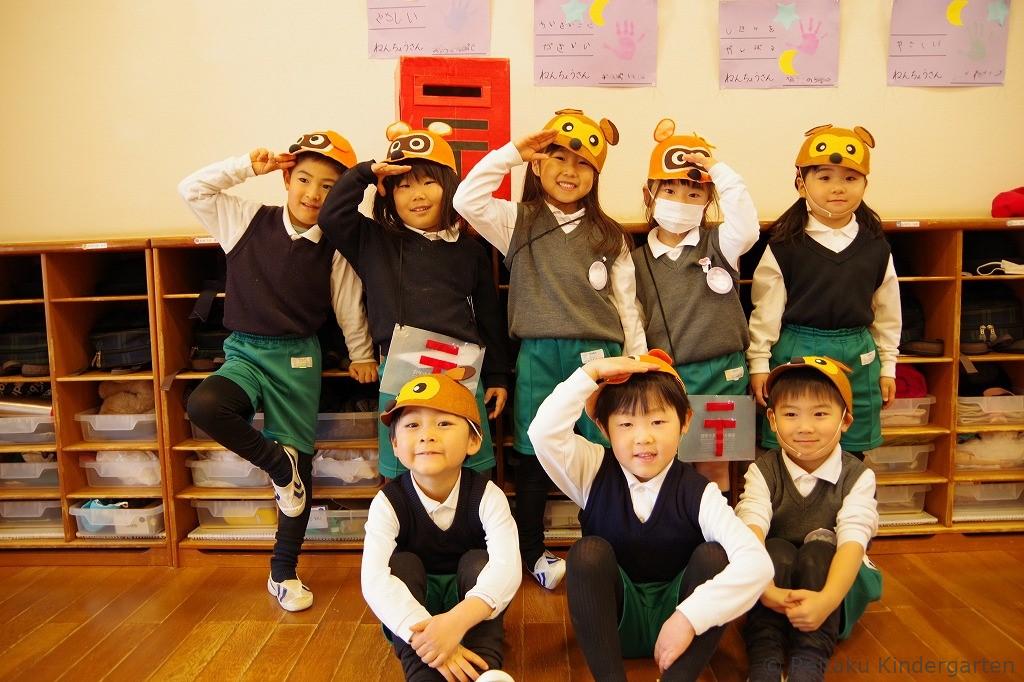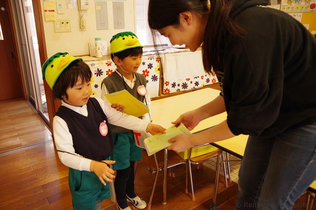 年中児は、1月中旬よりおともだちや先生にお便り(葉書)を書いたり、郵便ポストに投函されたおたよりを届けたりするかっぱ(さくら組)・ぽんぽこ(すみれ組)ゆうびんやさんを始めました。今日が最後の配達日で約2ヶ月間の配達のお仕事をやり遂げました。