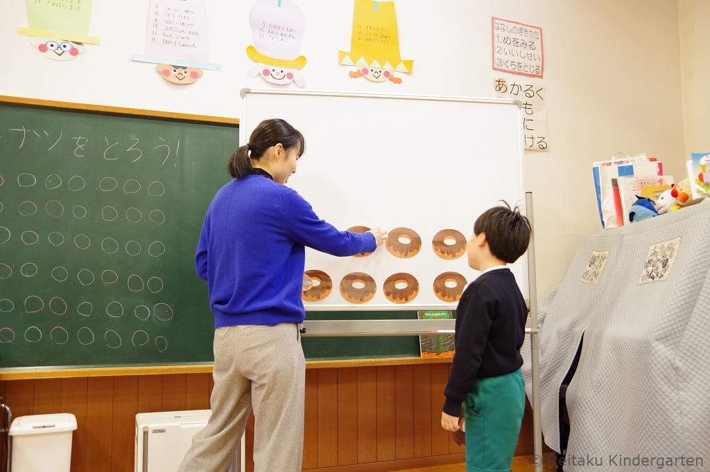 年長さんのうちから遊びの要素を取り入れ、楽しみながら思考力を育むことで小学生になったときに楽しみながら算数に取り組んでもらいたいということで実施をしました。