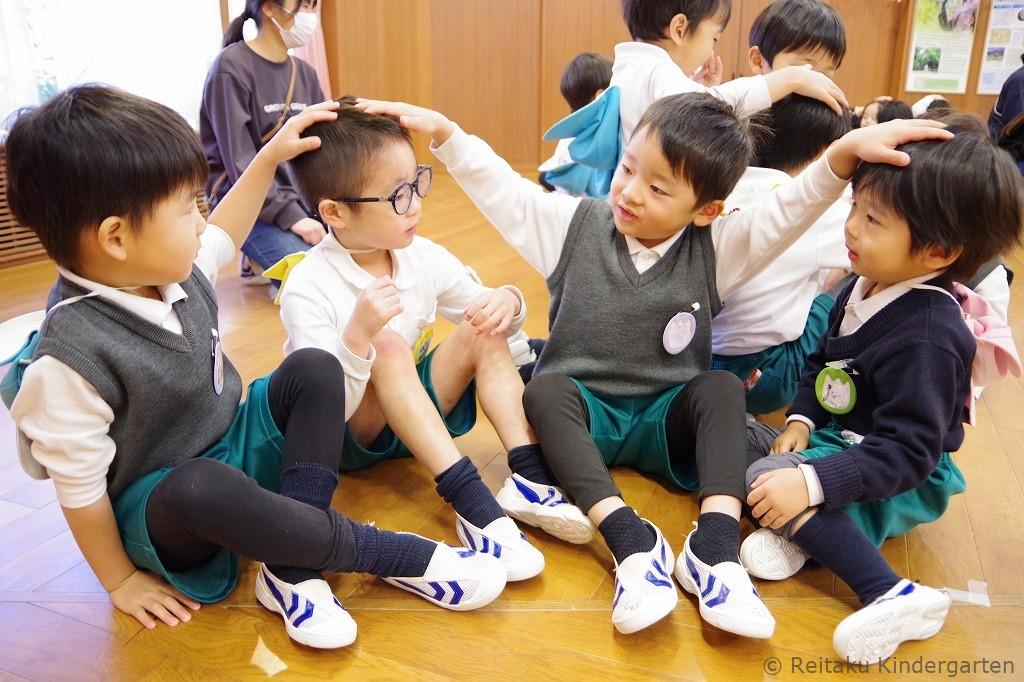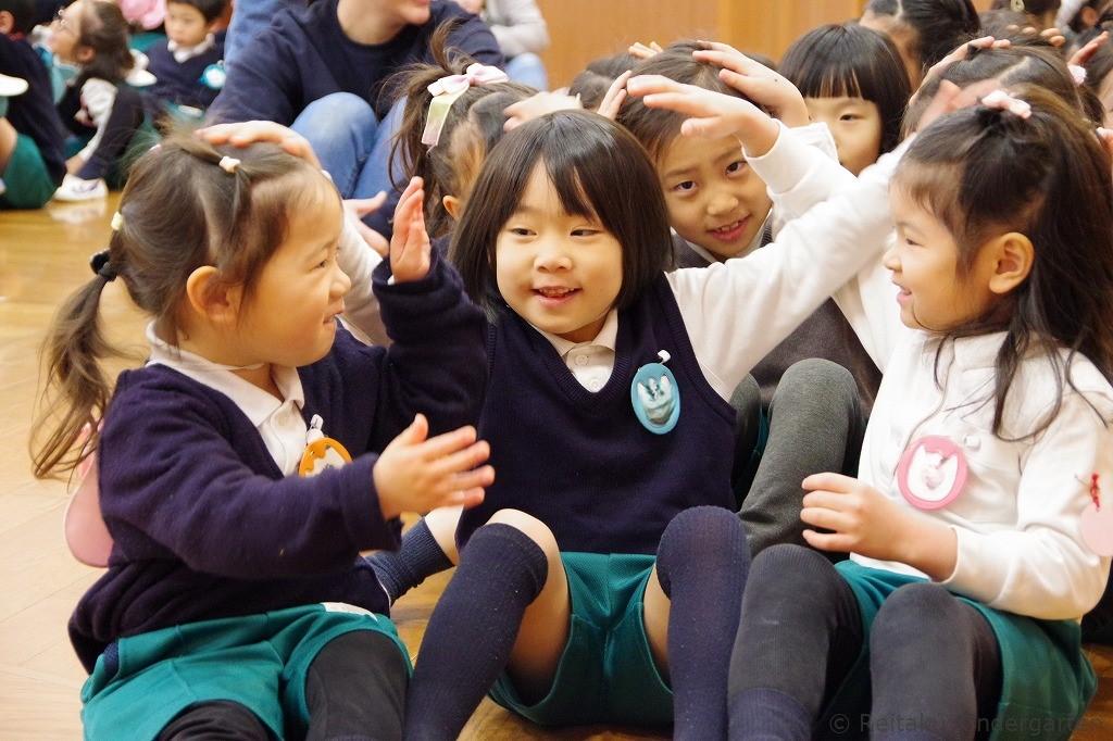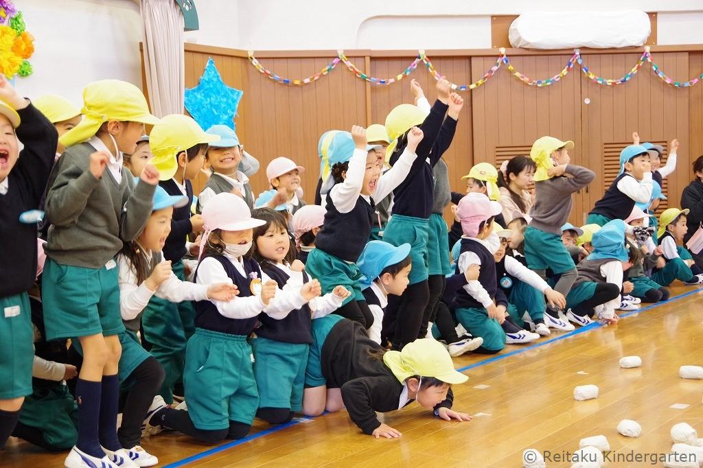 最後に、年長さんがお礼の歌、「ビリーブ」を元気よく歌ってお別れ会を終了しました。「年長さん、卒園して、小学校に行ってもがんばってね。」そんな思いをこめながら、年長さんを拍手で遊戯室からお送りしました。