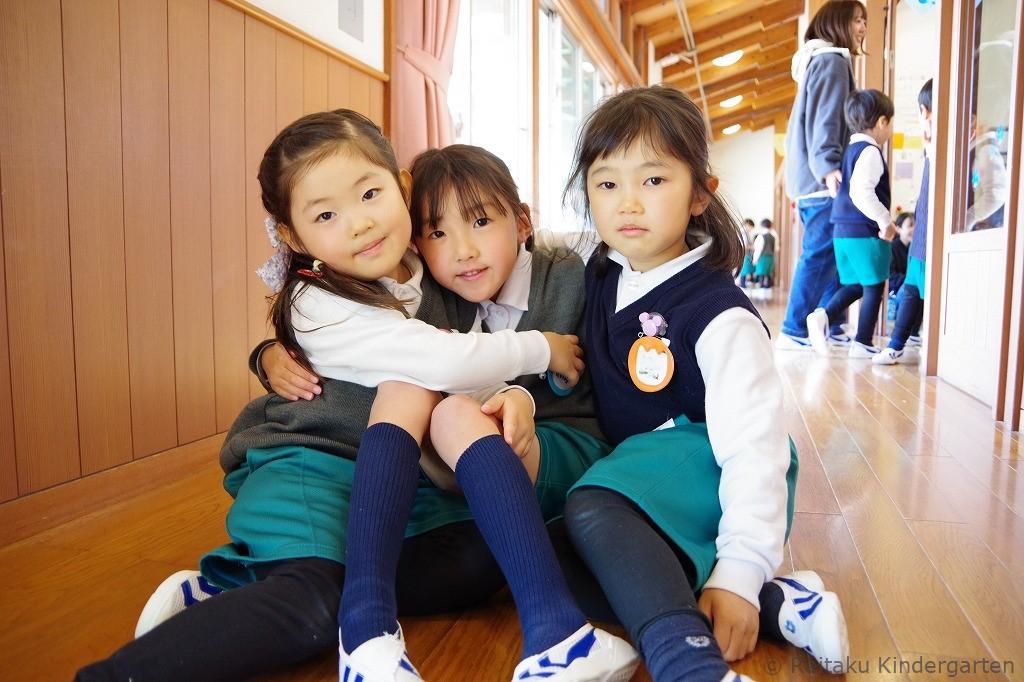 その後、お世話になった年長さんに感謝の気持ちをこめて、年中・年少さんとで「ずっとずっとおともだち」の歌をプレゼントしました。そのあと、年少さん年中さんから手作りの「下敷き」が年長さん一人ひとりにプレゼントされ、年長さんはとてもうれしそうでした。