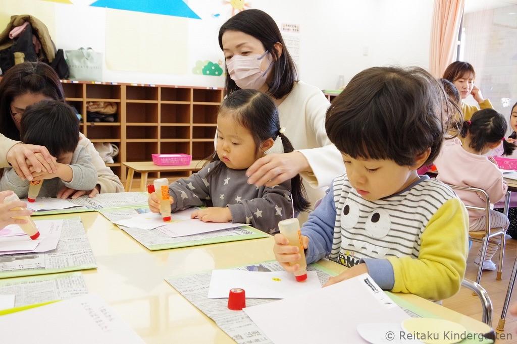3月は、親子で一緒に制作をしたり、子ども達だけで活動する時間を作ったりと、同年齢のお友だちや保護者同士の交流を深めつつ、4月へのスムーズな移行へと繋がるよう楽しい時間を過ごしました。