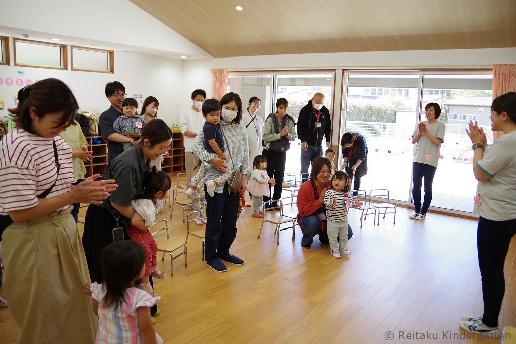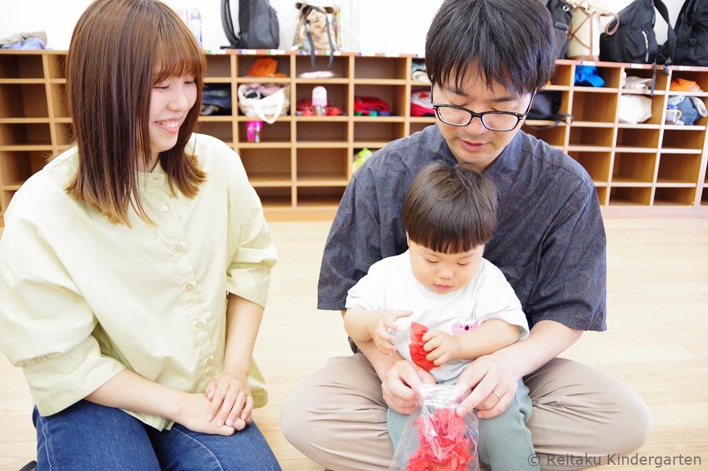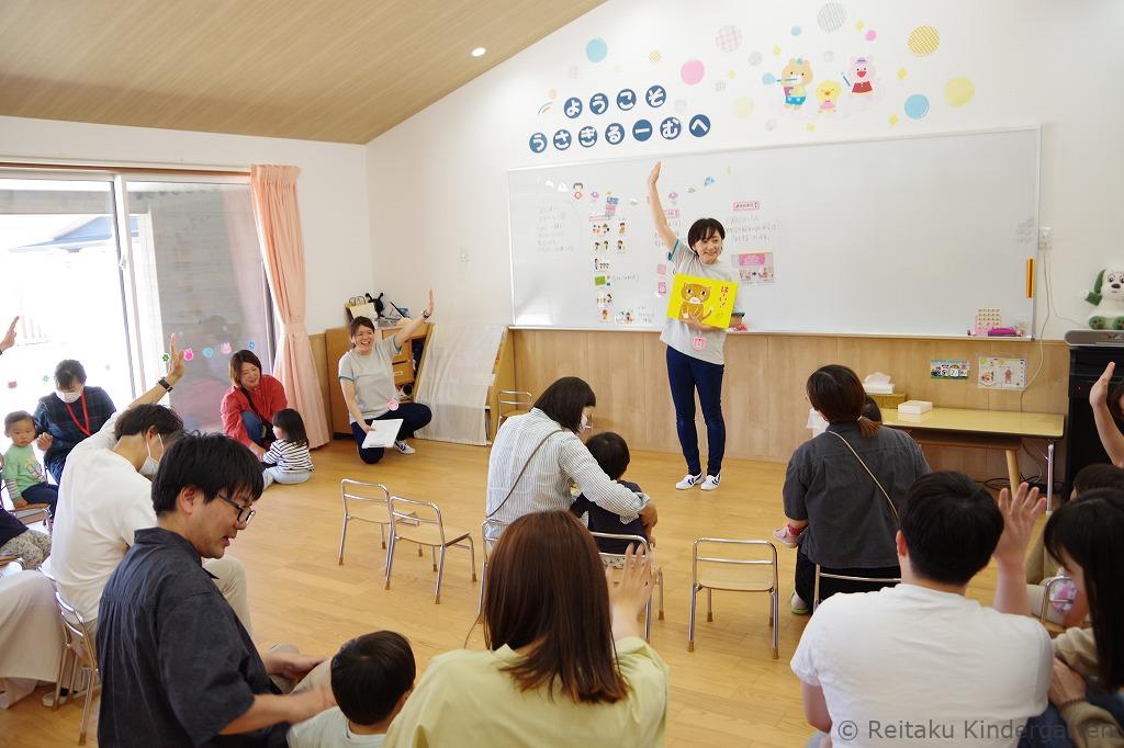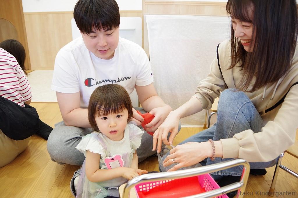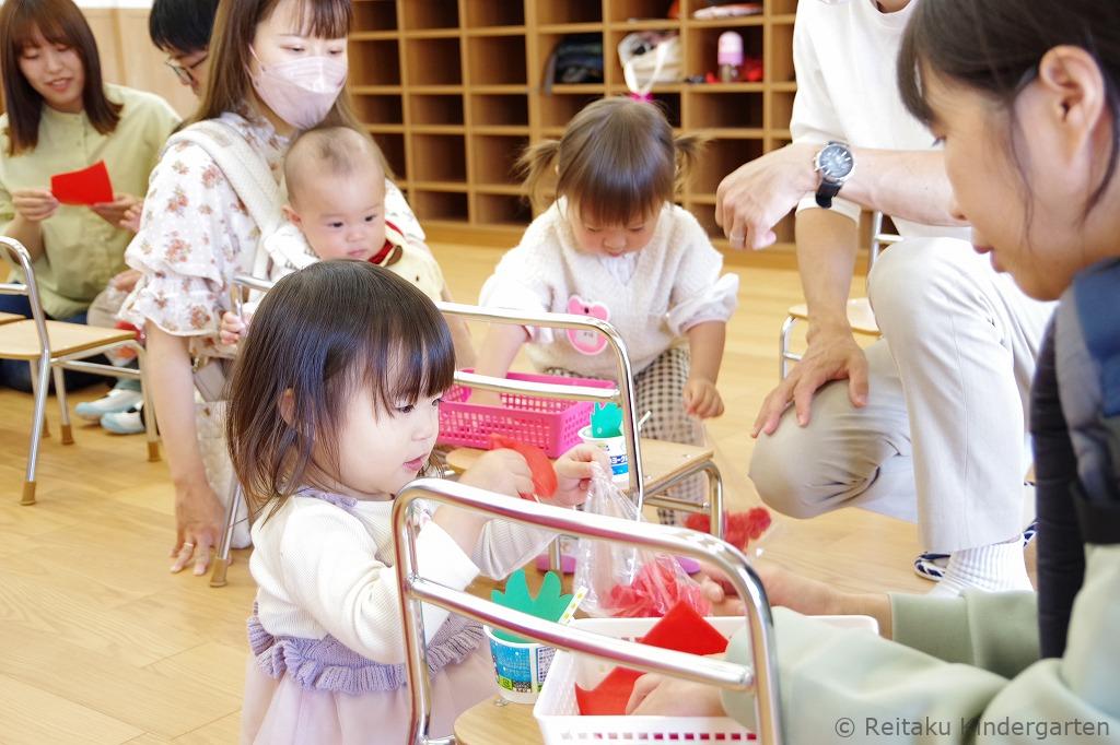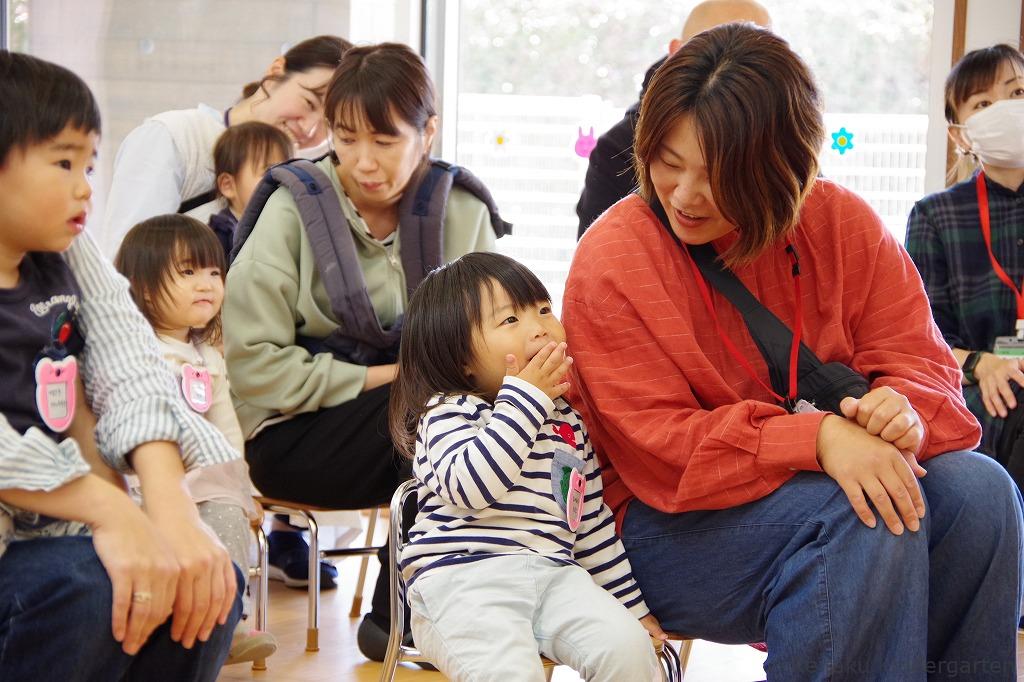 先生と一緒に手遊びをしたり、制作を楽しんだり、お外で元気いっぱい遊んだりと、内容は盛りだくさん!子どもたちも保護者の方も、そして先生たちも、みんなで笑顔あふれる時間を過ごしています。