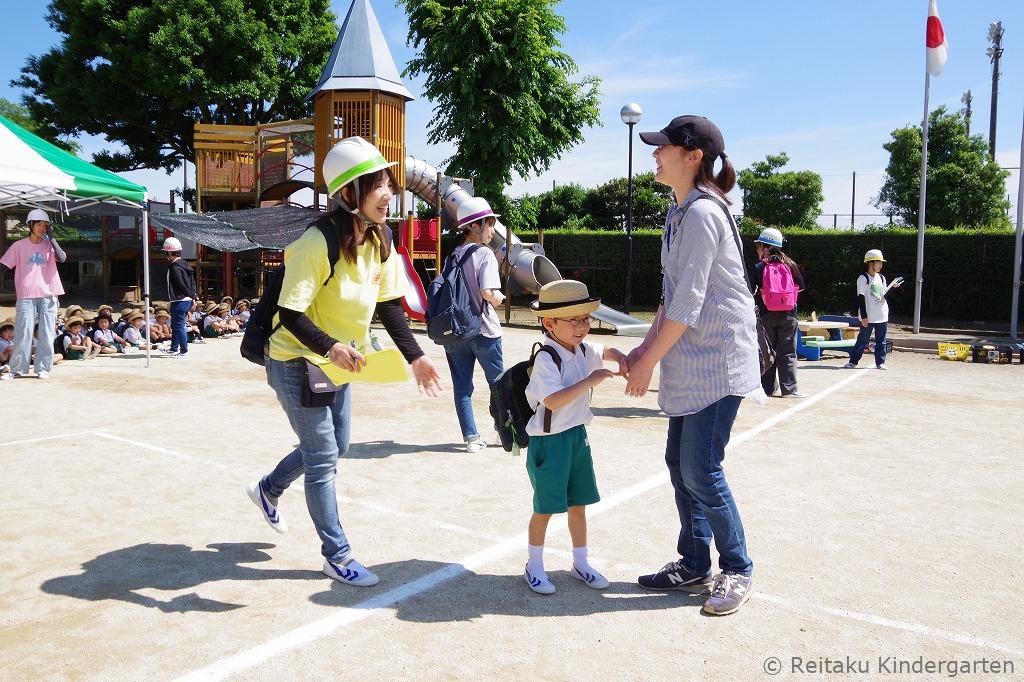 園児全員が園庭への避難を完了したところで、保護者に引渡し訓練の為のメールが配信されました。保護者の方々のお迎えを待つ間、園庭で待機していた子ども達ですが、騒ぐことなく最後まで真剣に訓練に参加する事ができました。保護者の方々の協力のもと引渡しもスムーズに終了し、滞りなく訓練を終えることができました。今回の訓練を通じて災害時の対応について今一度確認する事ができた訓練になった事と思います。ご協力いただきありがとうございました。