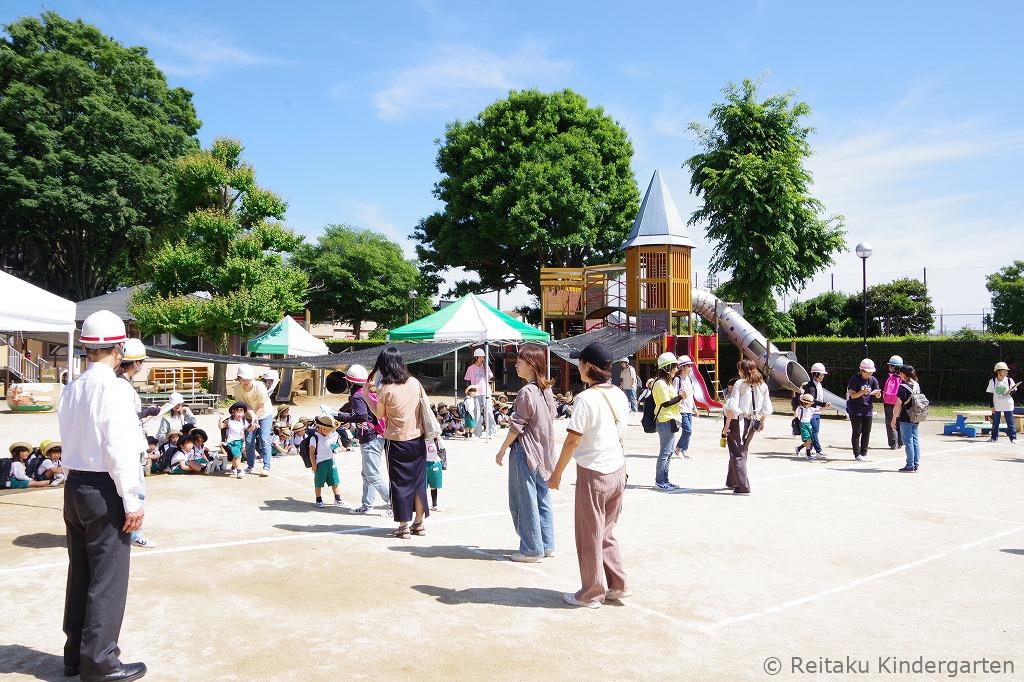 5月28日(水)、幼稚園にて引渡し訓練が行われました。園では園児の安全確保のため、様々なケースを想定した避難訓練を実施しておりますが、今回は災害発生時の対応方法について、幼稚園と保護者で共通理解を図ることを目的として行なわれました。