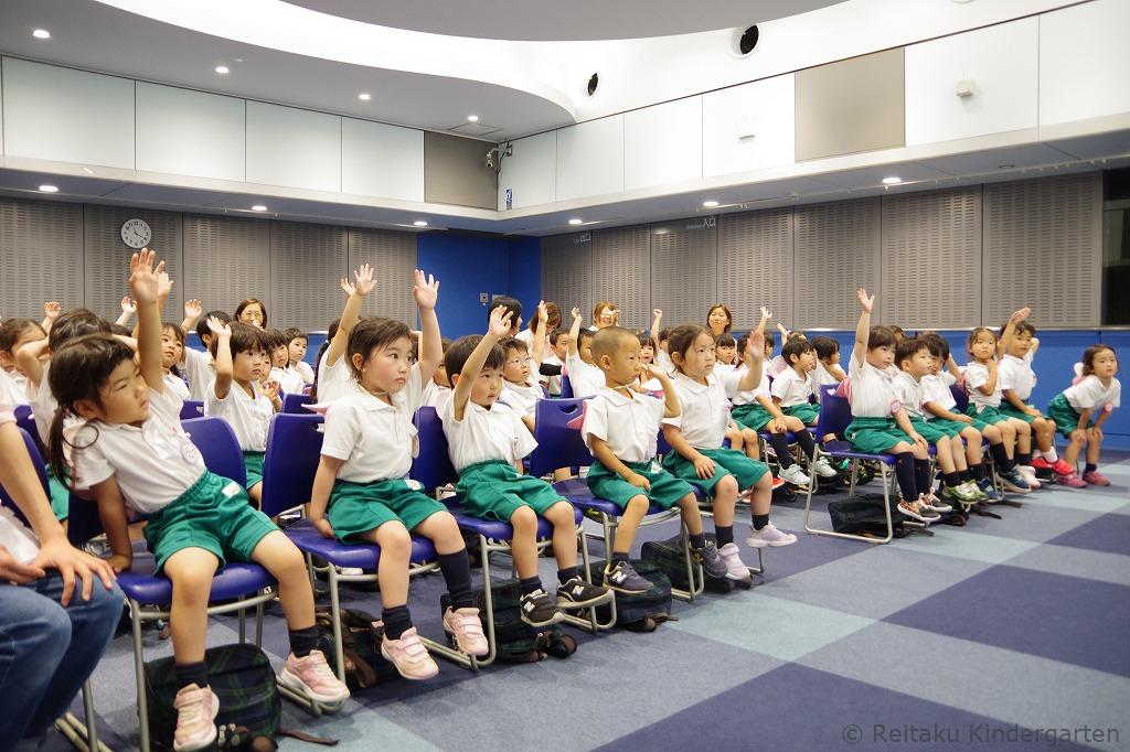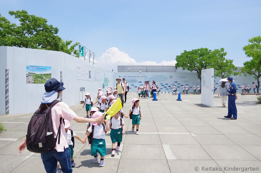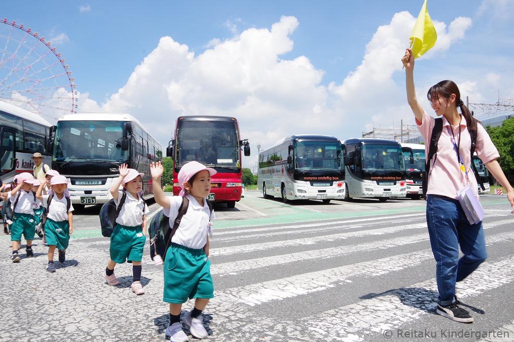 保護者の方々に見送られ、大型バス2台に乗りこんで東京都葛西臨海水族園へ出発です。車中、みんなでバスレクをしながら楽しく過ごしました。