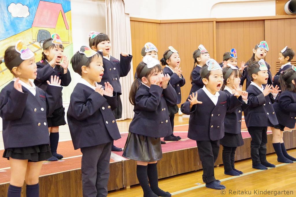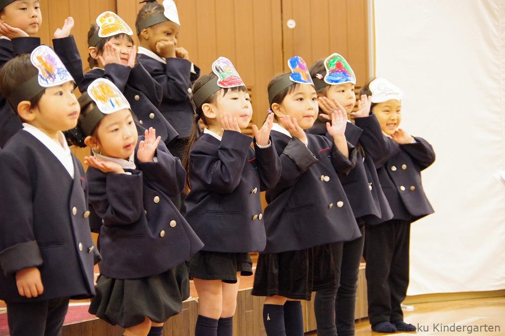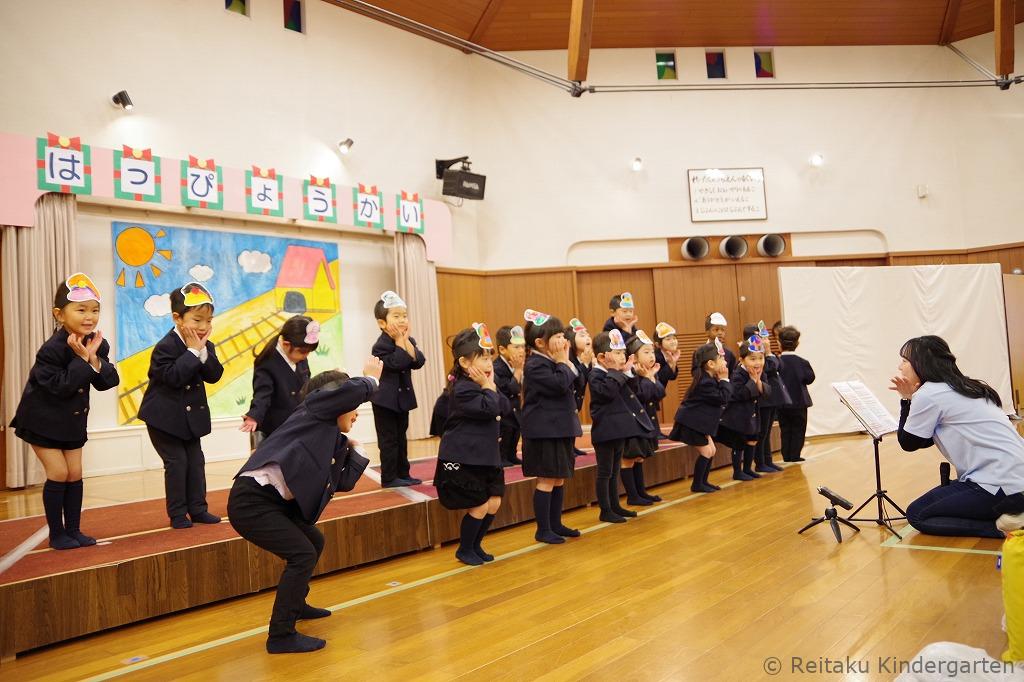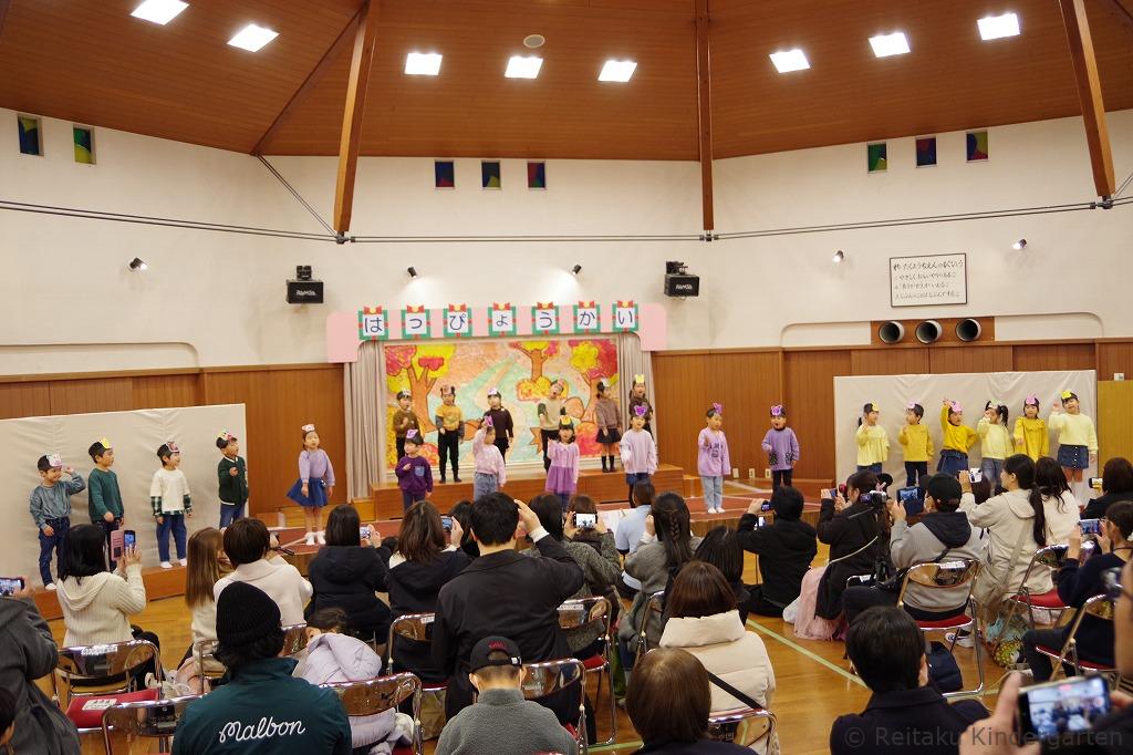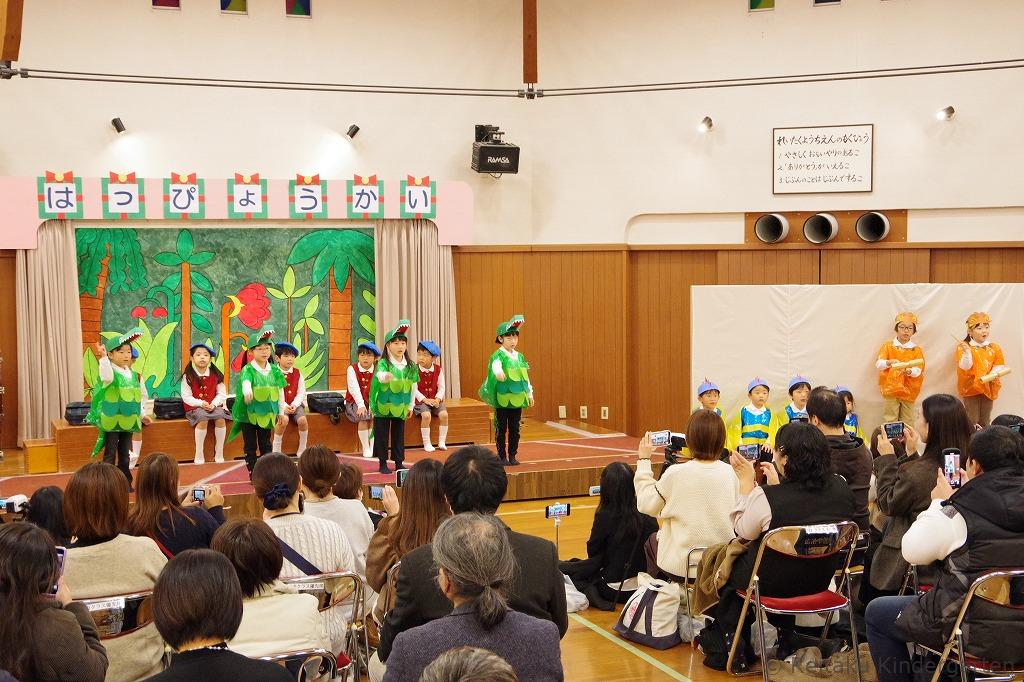 12月7日(日)、昨日に続いて発表会の第2日目が行われました。今日は、ぱんだ組(年少)、さくら組(年中)、つき組(年長)の3クラスが登場し、それぞれのクラスらしい魅力いっぱいの発表を披露してくれました。