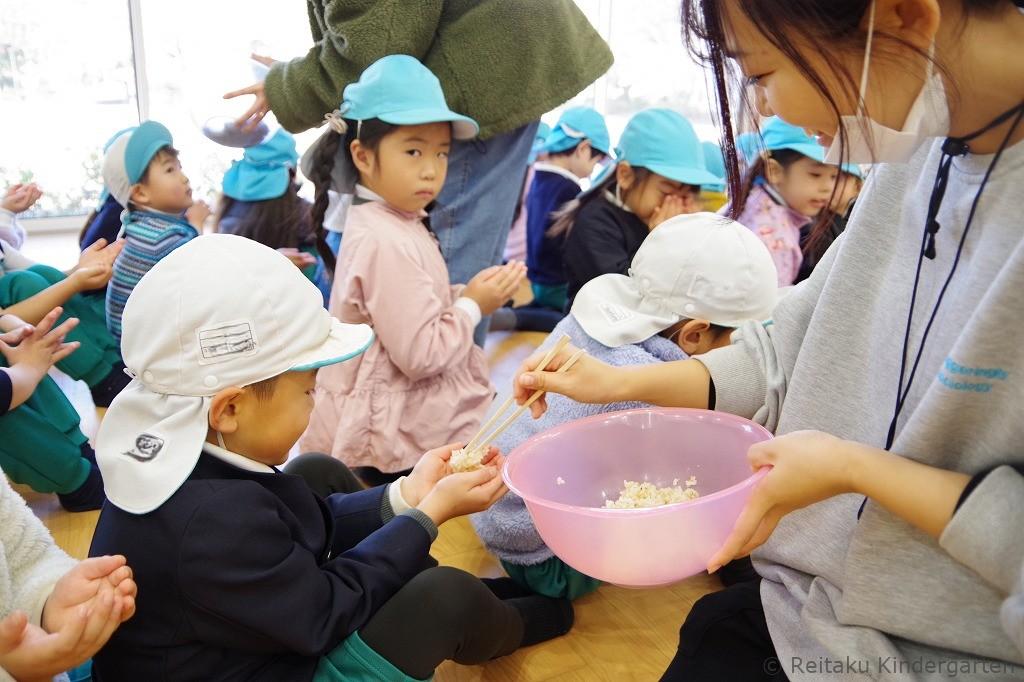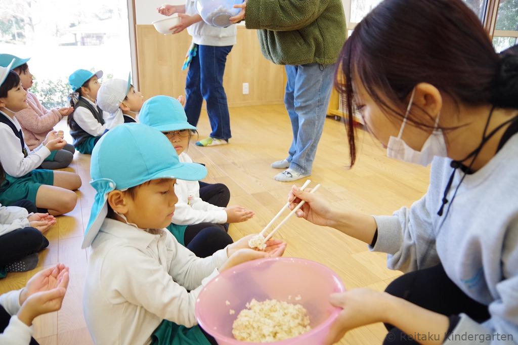 「いつものお米と違う匂いがする!」「色が違う!」「もちもちしてる!」「すごくおいしい!」と嬉しそうな声があちこちから聞こえてきて、「いただきます」の言葉にも自然と心がこもっていたように感じます。