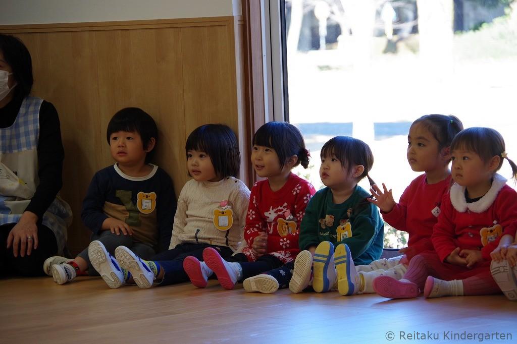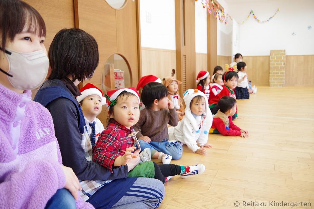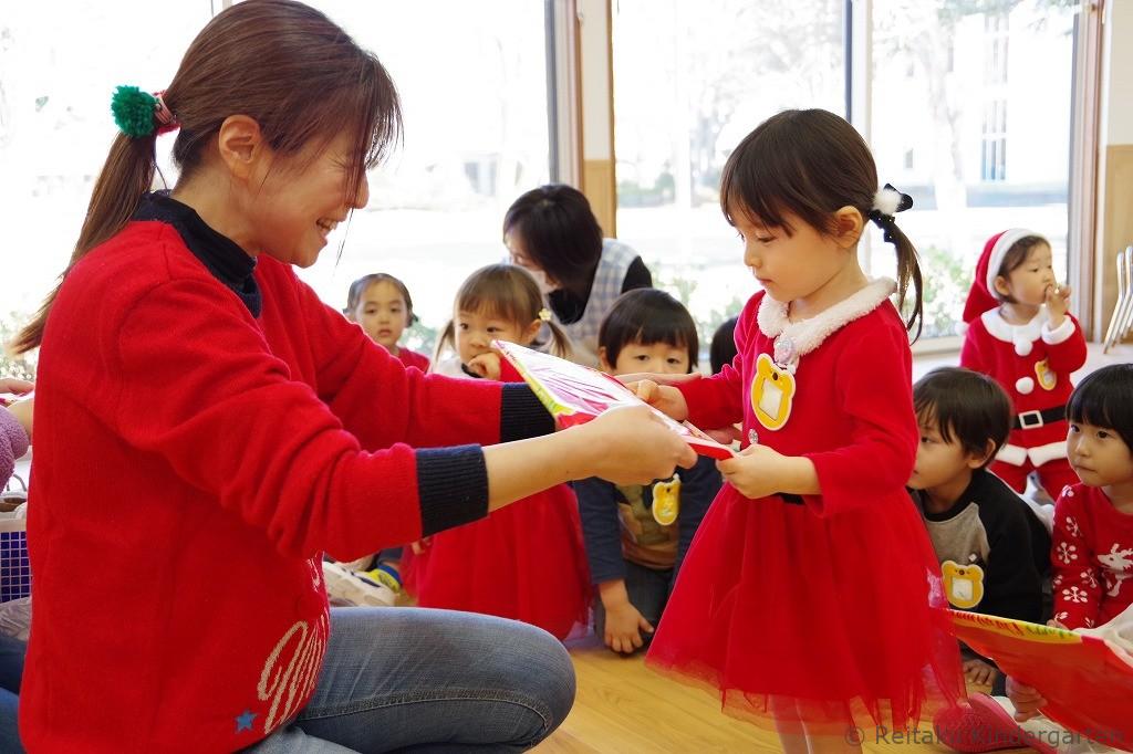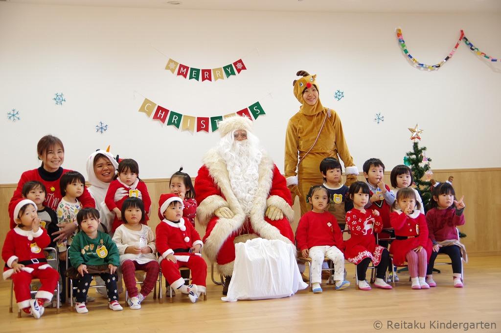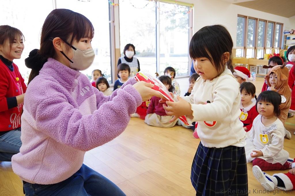 その後、満3歳児クラスのお友だちのところにもサンタさんが来てくれて、目をキラキラ輝かせながら大喜びの子どもたち。思い出に残る素敵な一日となりました。
