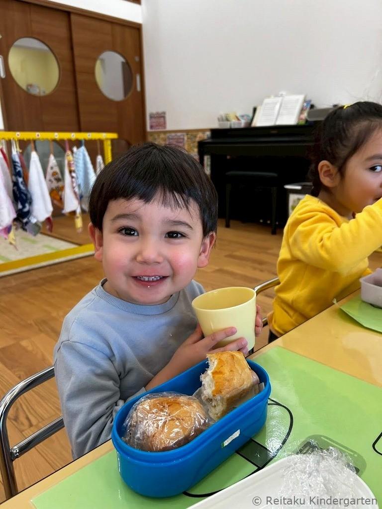 「びよーんって伸びるよ!」「おいしい〜!」と感動しながら、何度もおかわりをする子も。おもちが苦手だった子も、自分たちでついた特別なおもちは格別だったようで、にこにこしながら味わっていました。