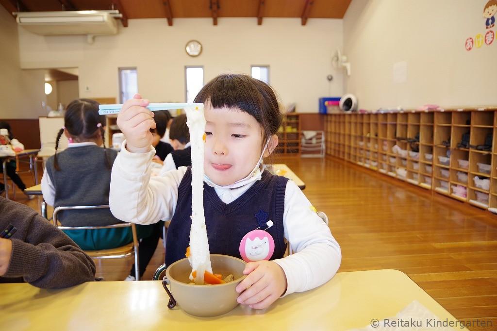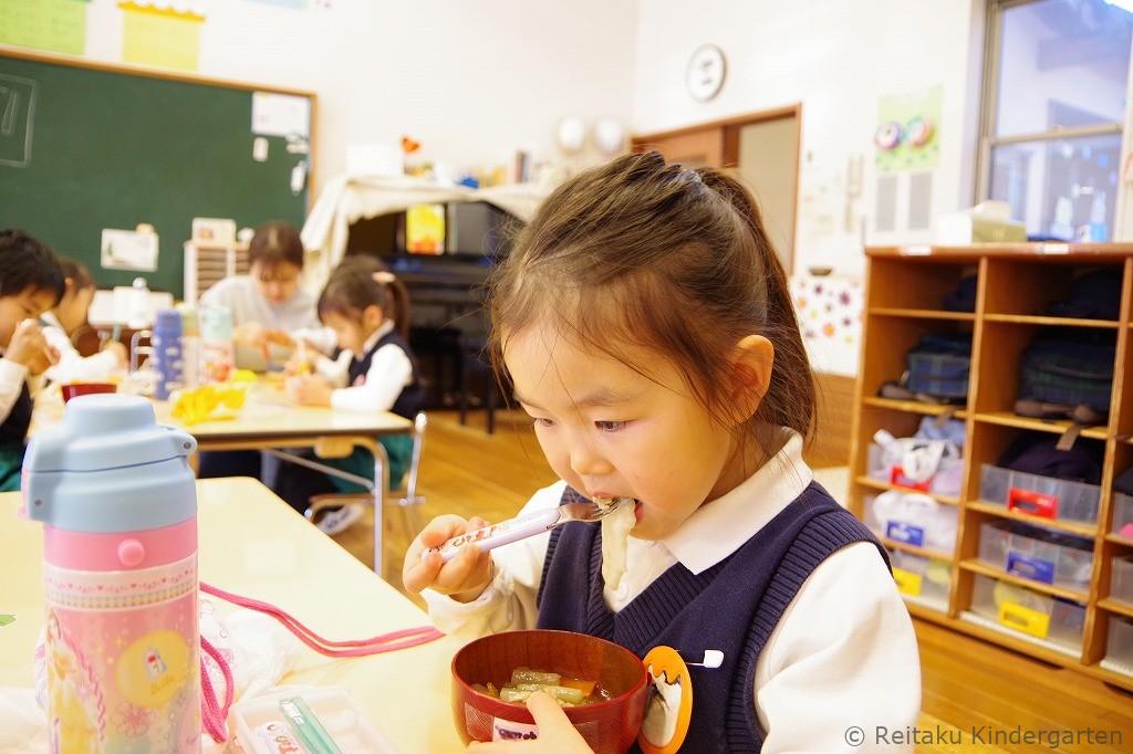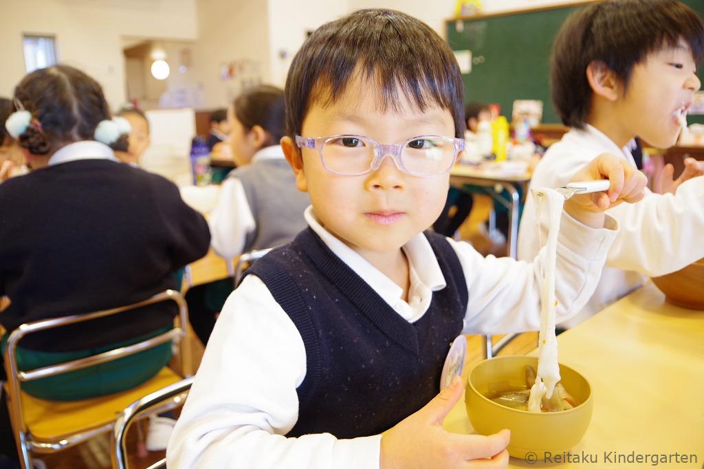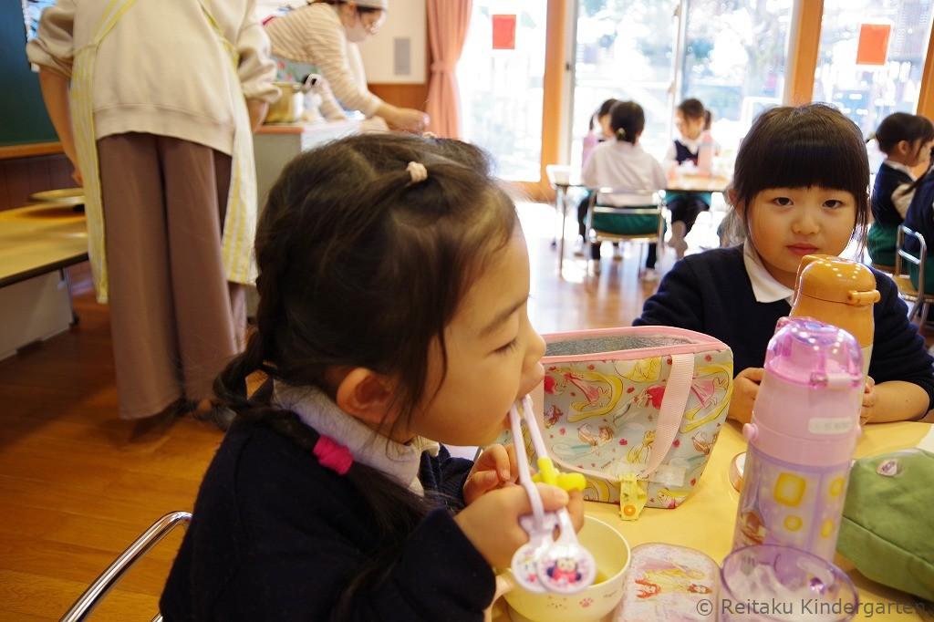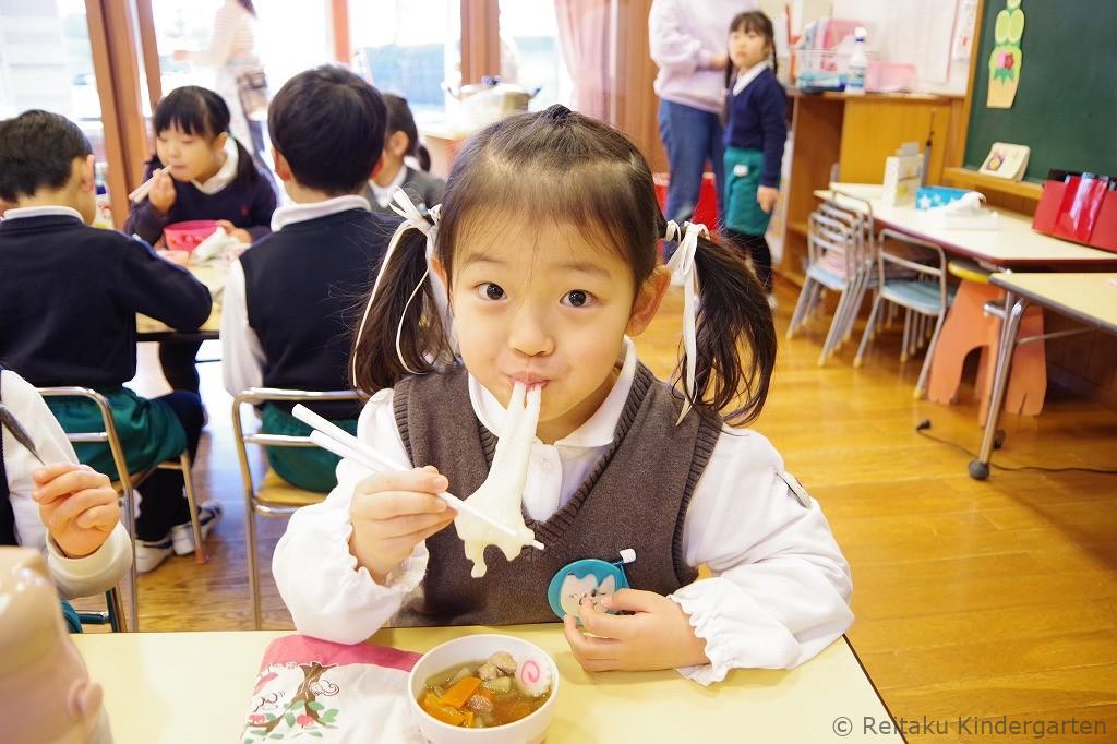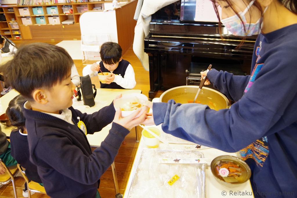 餅つきのあとは、保育室に戻って、お雑煮をいただきました。