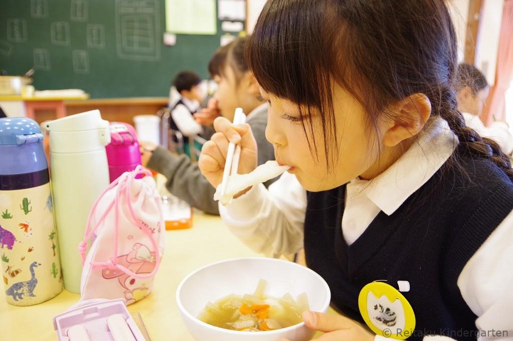餅つきのあとは、保育室に戻って、お雑煮をいただきました。