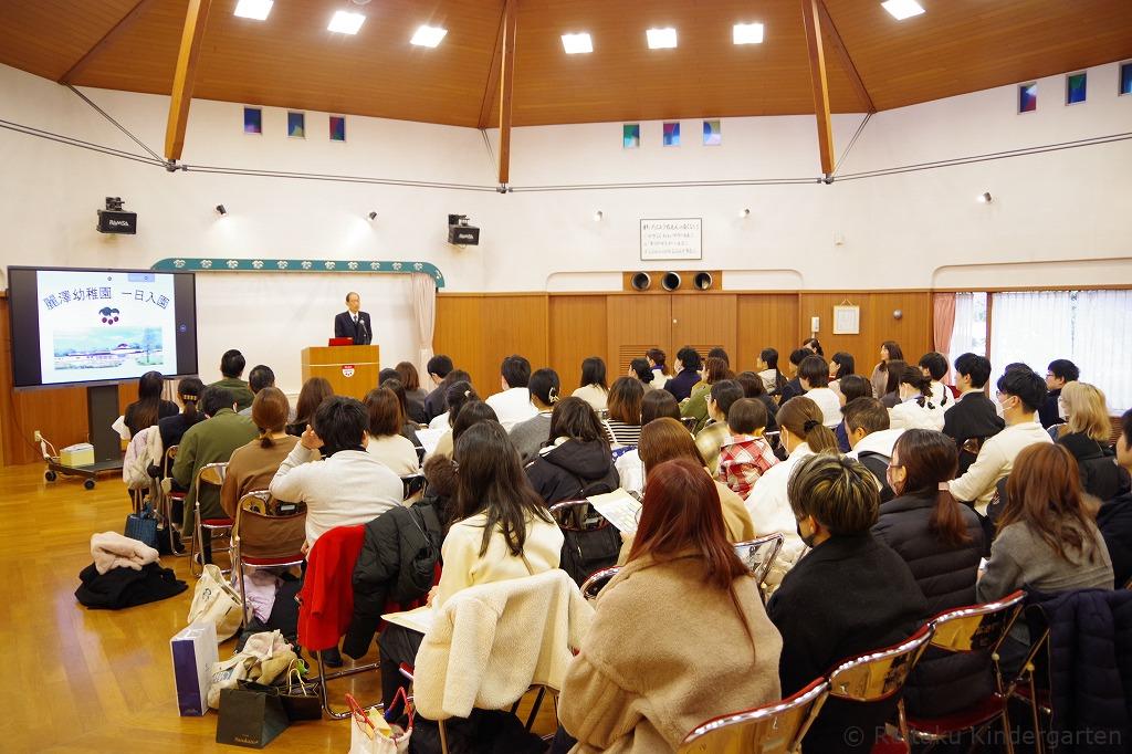 説明会終了後、保護者の方と再会した子どもたちは、保育室での出来事を嬉しそうに話してくれました。「幼稚園、楽しかった?」と尋ねると、にこにこ笑顔で「楽しかった」と答えてくれる姿も見られ、4月の入園がますます楽しみになる一日となりました。