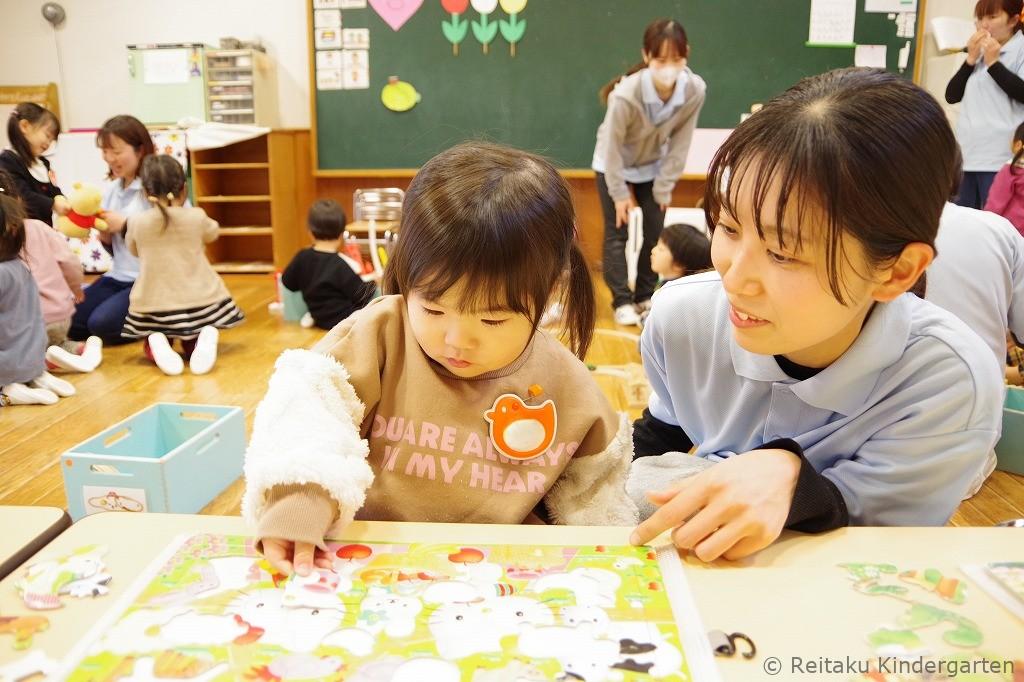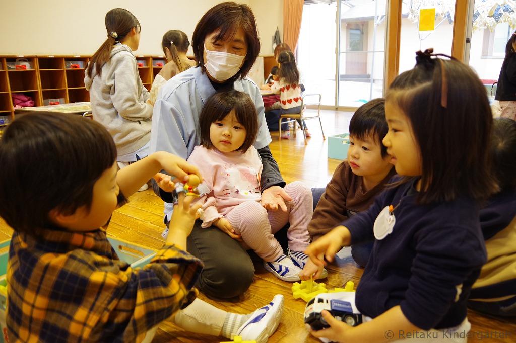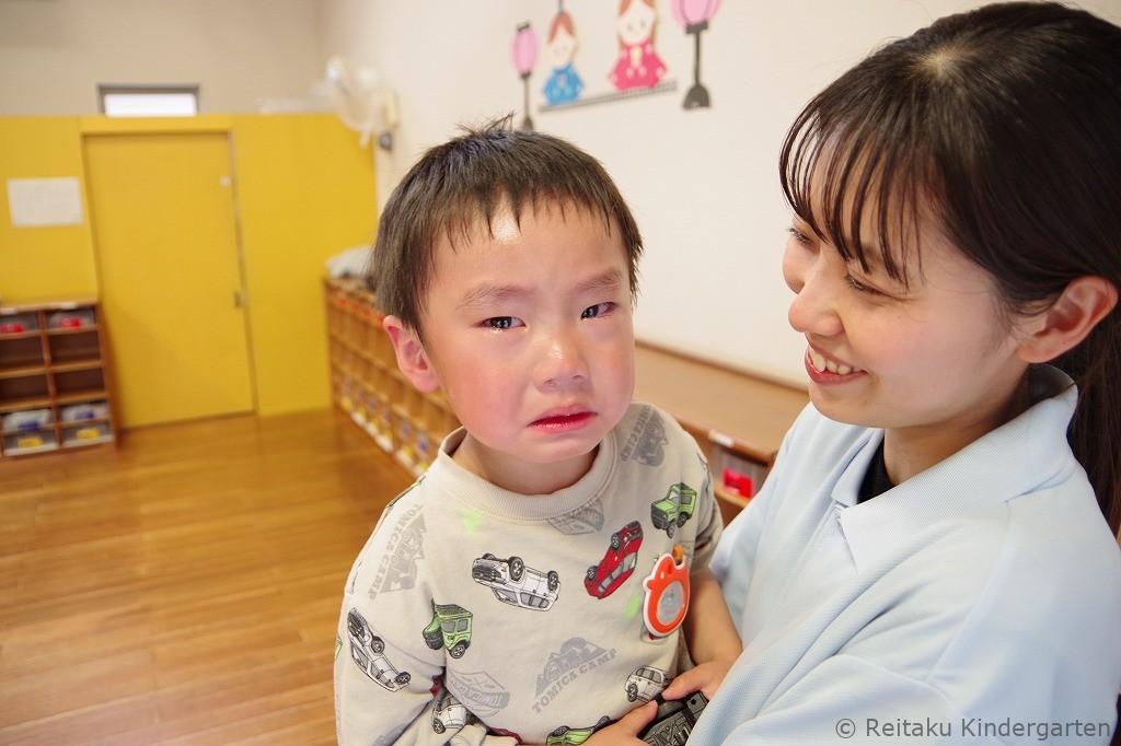 受付を済ませた後、それぞれ指定された保育室に入りました。先生と一緒におもちゃで楽しそうに遊ぶ子もいれば、お母さんのそばを離れられず不安そうな表情を見せる子もおり、子どもたちの姿はさまざまでした。