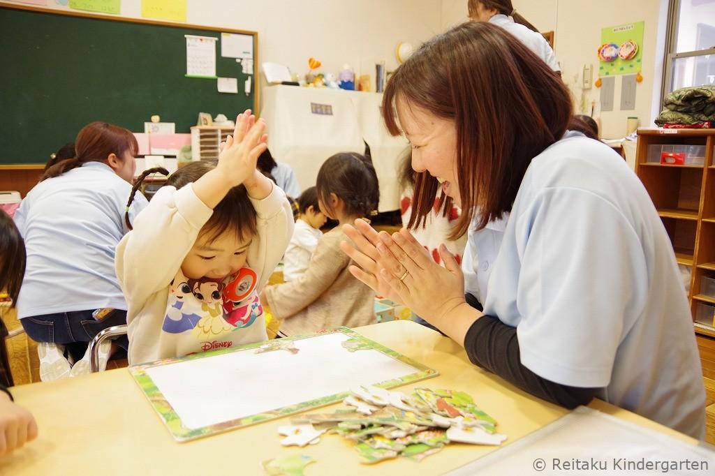 説明会終了後、保護者の方と再会した子どもたちは、保育室での出来事を嬉しそうに話してくれました。「幼稚園、楽しかった?」と尋ねると、にこにこ笑顔で「楽しかった」と答えてくれる姿も見られ、4月の入園がますます楽しみになる一日となりました。