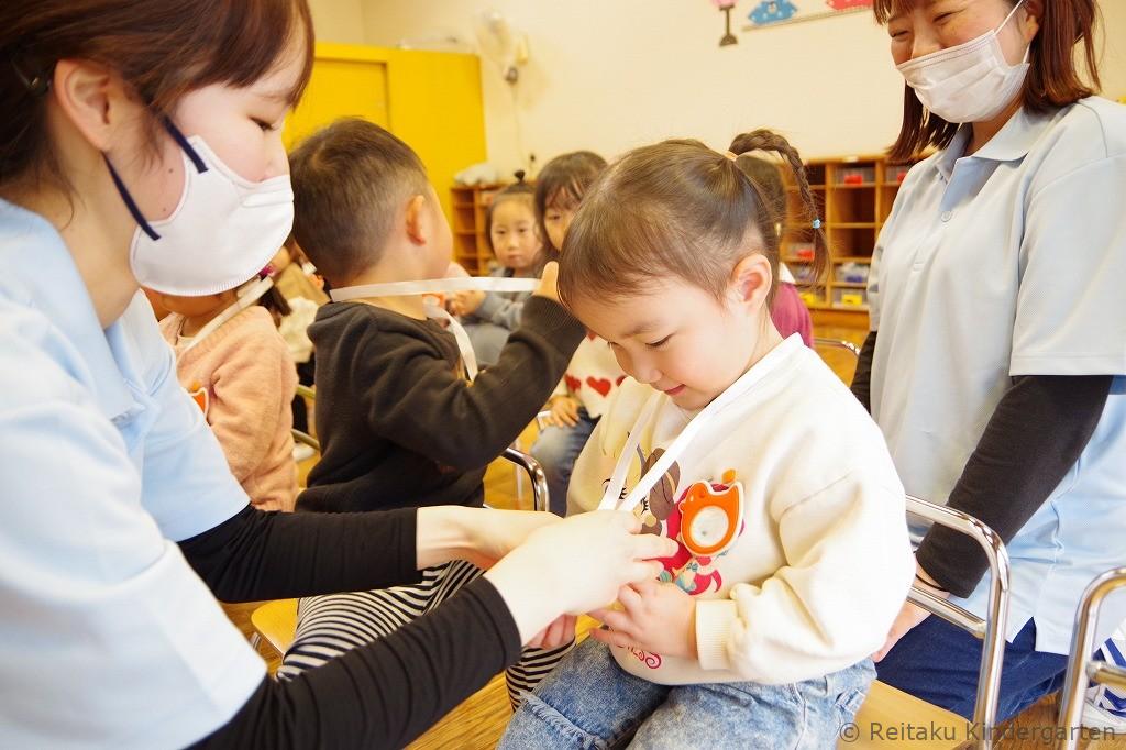 2月7日(土)、新年度に入園予定の子どもたちを対象とした「一日入園」を行いました。子どもたちは保護者の方に付き添われ、少し緊張した様子で幼稚園にやってきました。